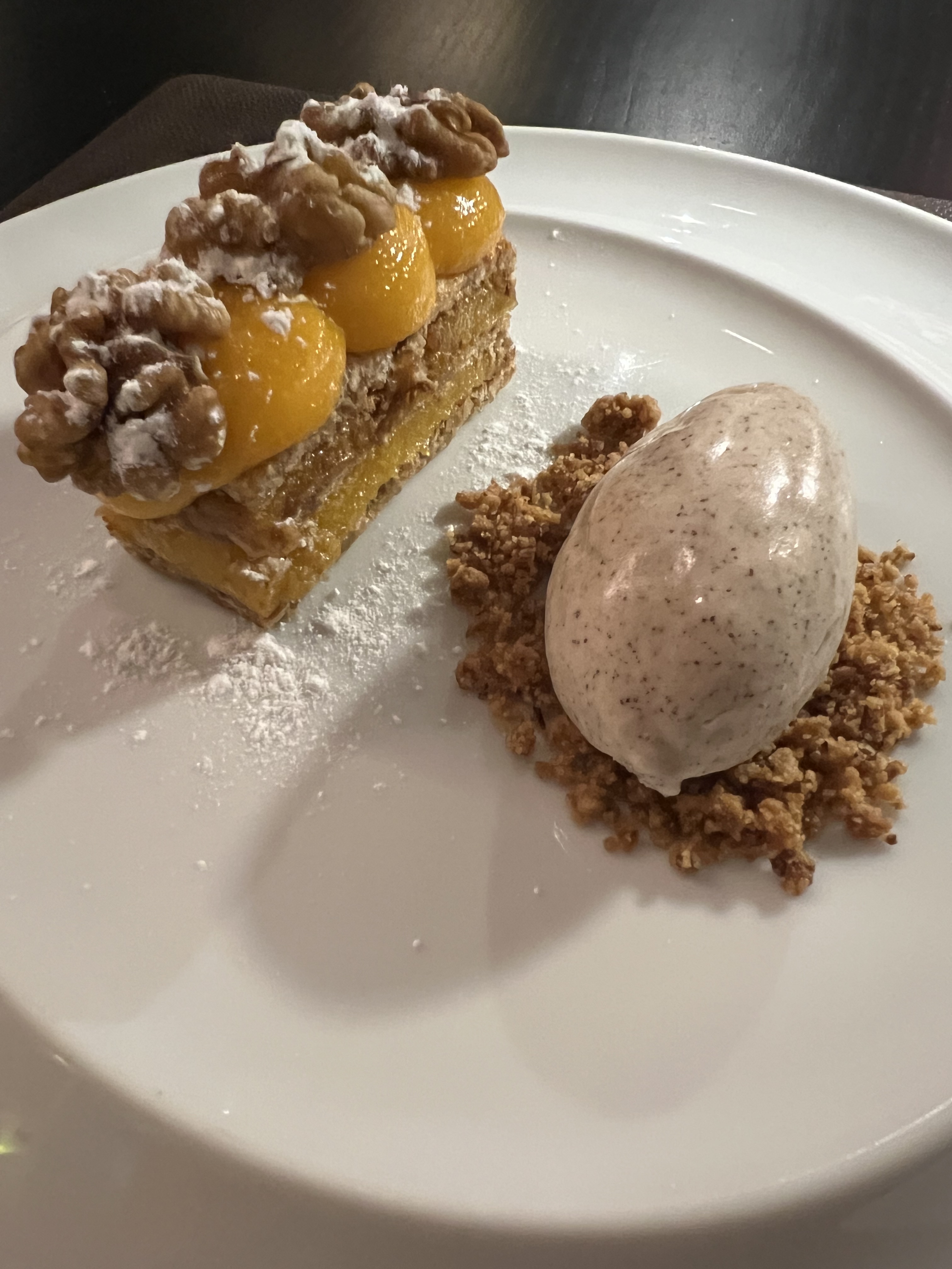 A series of starters for the tasting menu. They bring you a wooden box with all the utensils you’ll need throughout your meal.A beautiful piece of beef after a couple of seafood dishes. And it was hiding an ingredient I haven’t seen in a long time…Crosnes! (Also known as Chinese artichokes.) Found mostly in Asian and French cooking, my first taste of them was at a high-end French restaurant in Quebec City many years ago. They look like little caterpillars, but it’s a root veg that is really tasty and crunchy. (A relative of mint.) I grew some in my garden for several years. You don’t see them in the US very often. Two desserts, because one’s never enough!