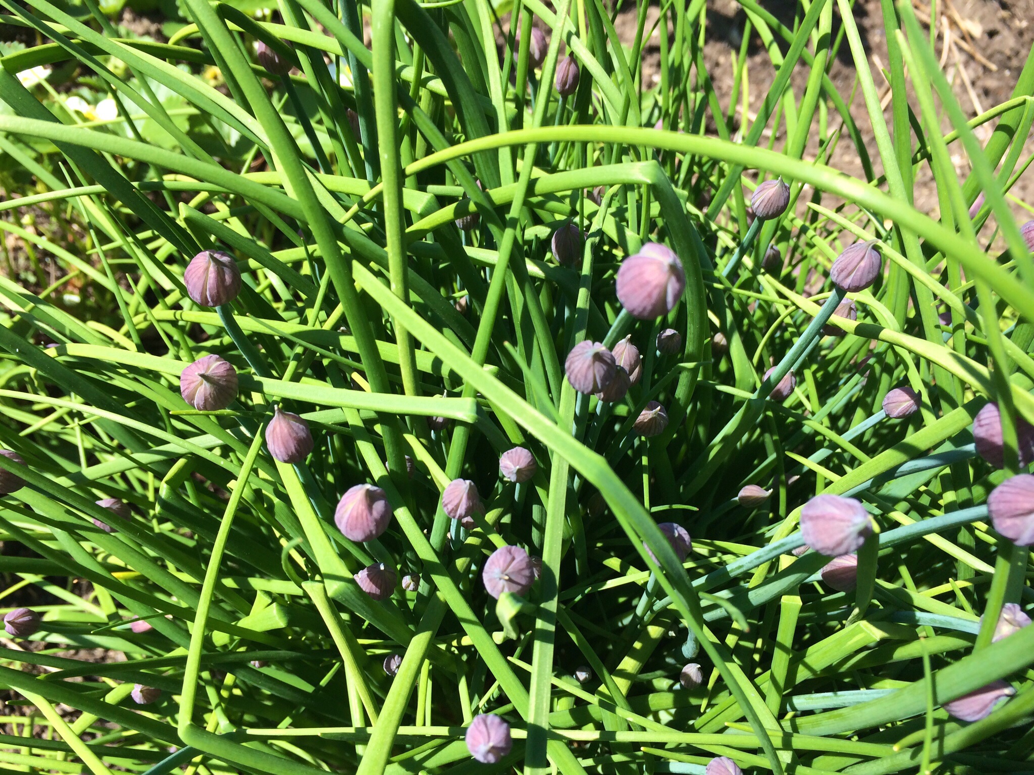 This is the time of year when the chives in my herb garden are busting out with blossoms. Before they pop, I head out every few days and snip the larger ones off the chive plants, wrap them in freezer bags and freeze them.