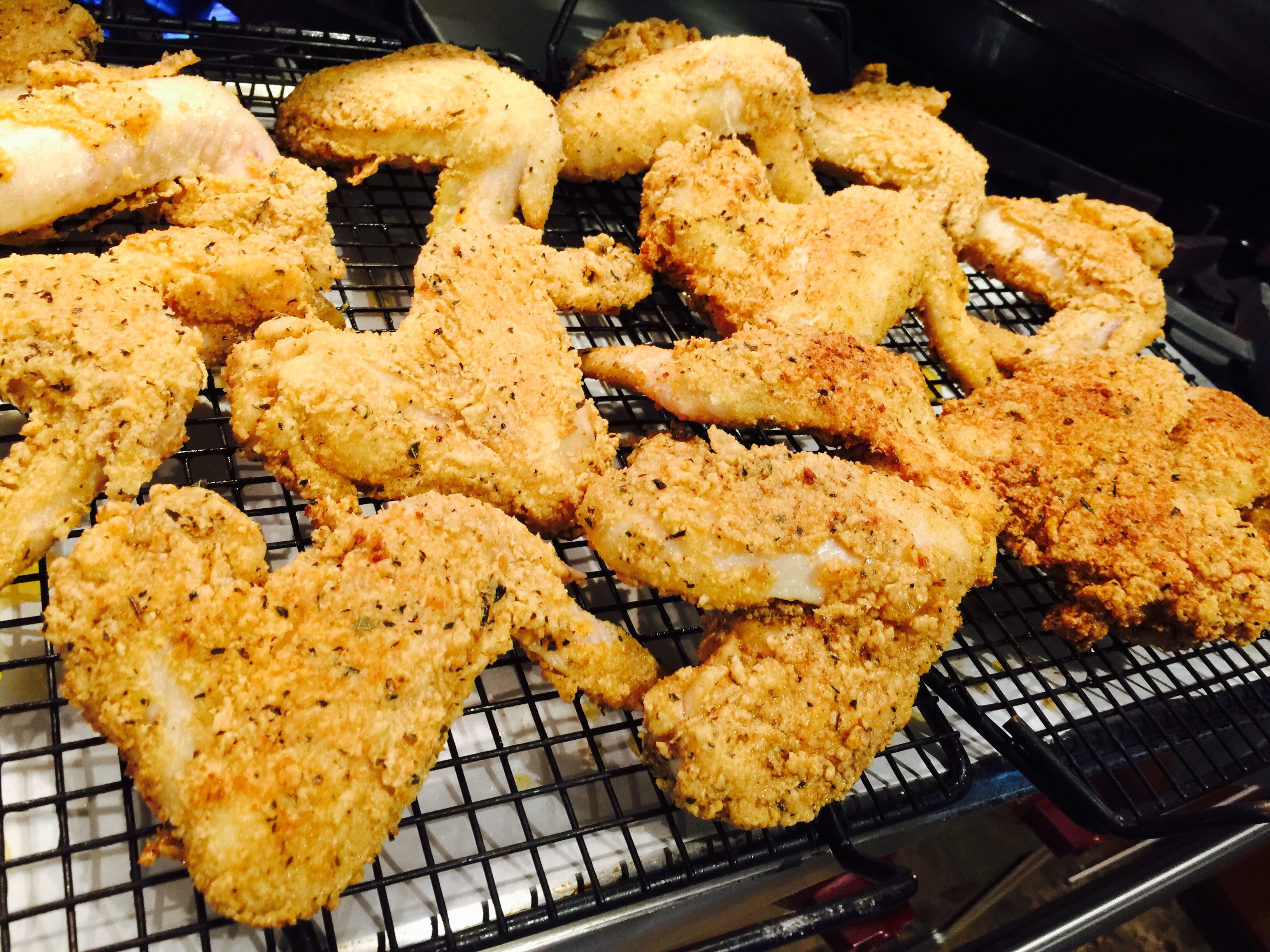Pre-heat the oven to 350 degrees, and when all the chicken has been fried and put on the sheet pan, place the pan in the oven and finish cooking, about 30 minutes.