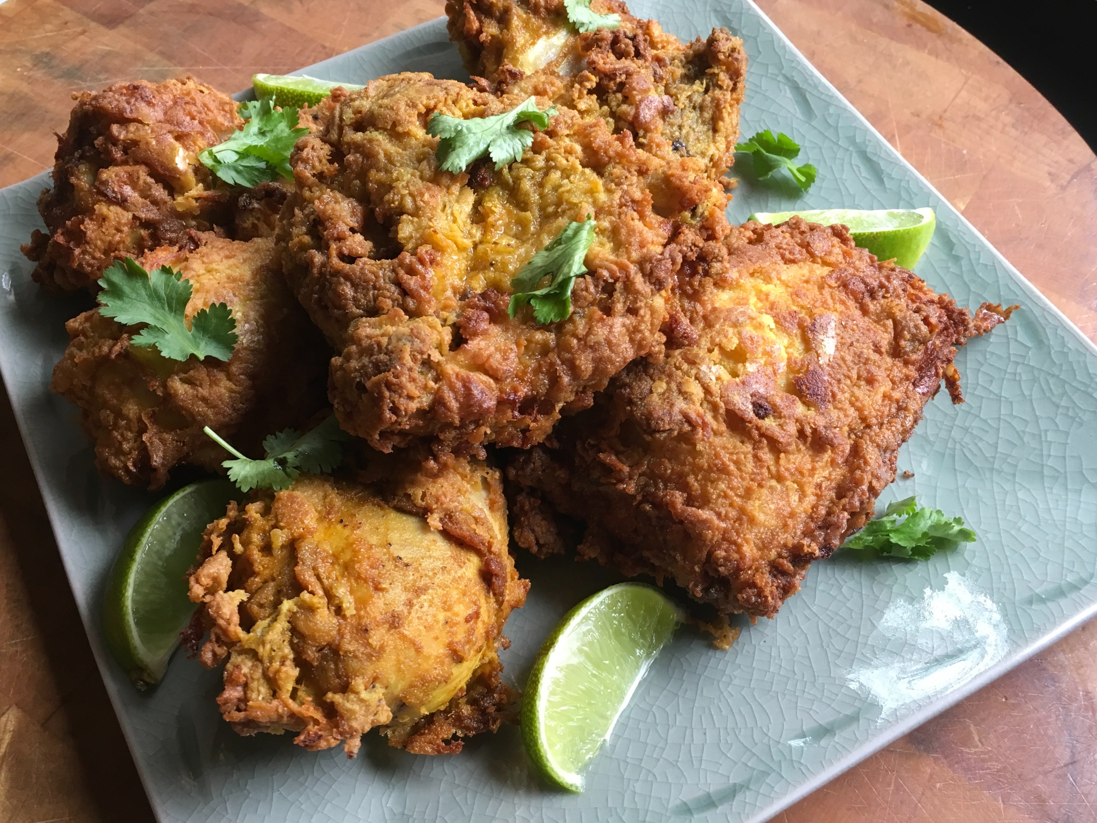 Recently, I spotted a recipe that looked like something I could handle first time around: “Indian Cooking 101,” if you will. It uses the traditional 2-step tandoori process of marinating: first, with the spices and then with yogurt for tenderizing. Using chicken thighs and drumsticks (as opposed to breast meat) meant the chicken would be flavorful and juicy. And frying in oil meant a crispy skin. I was ready!