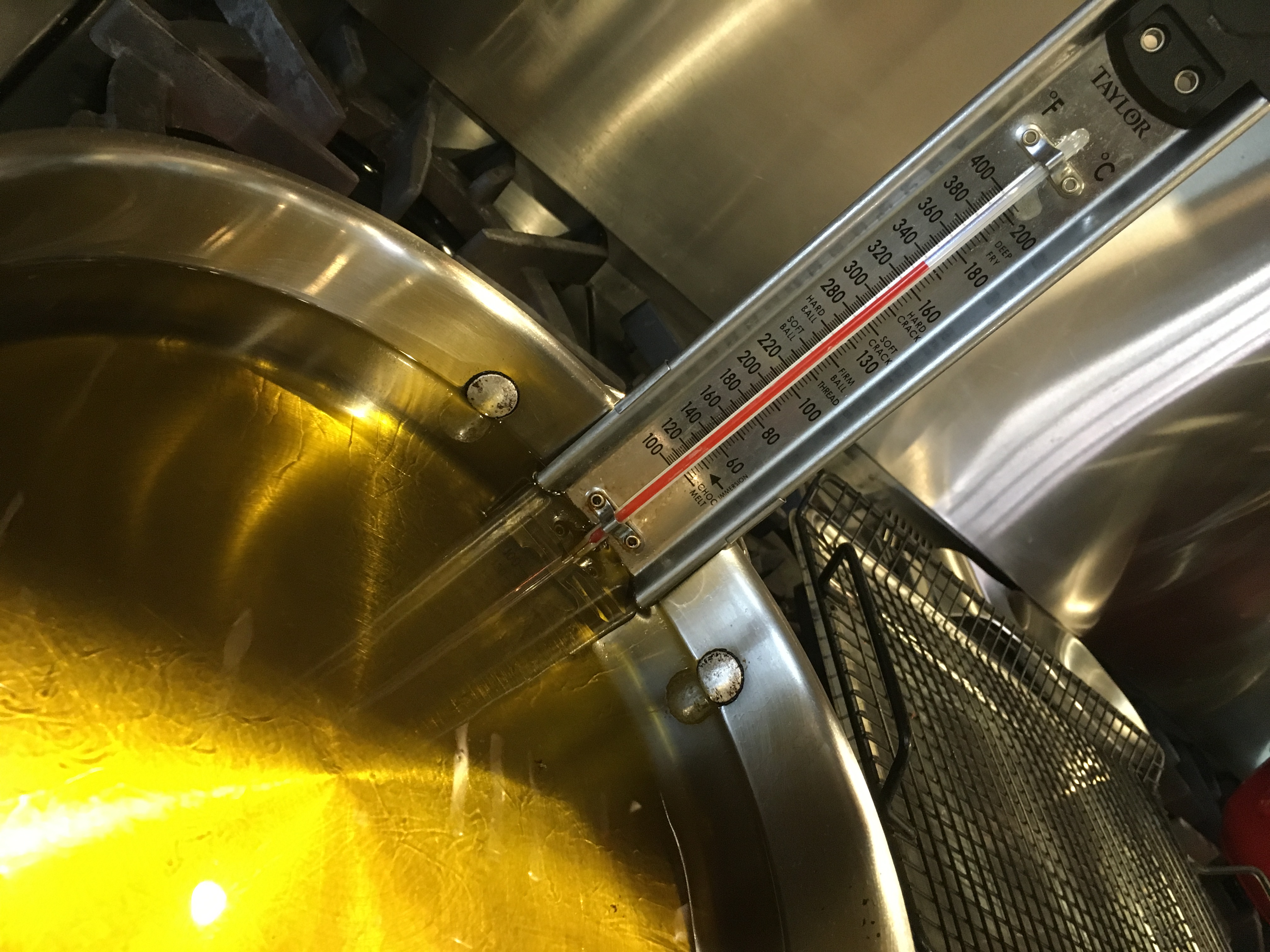 Meanwhile, in a large heavy saucepan, heat about 2″ of the oil to 325 degrees on a thermometer.