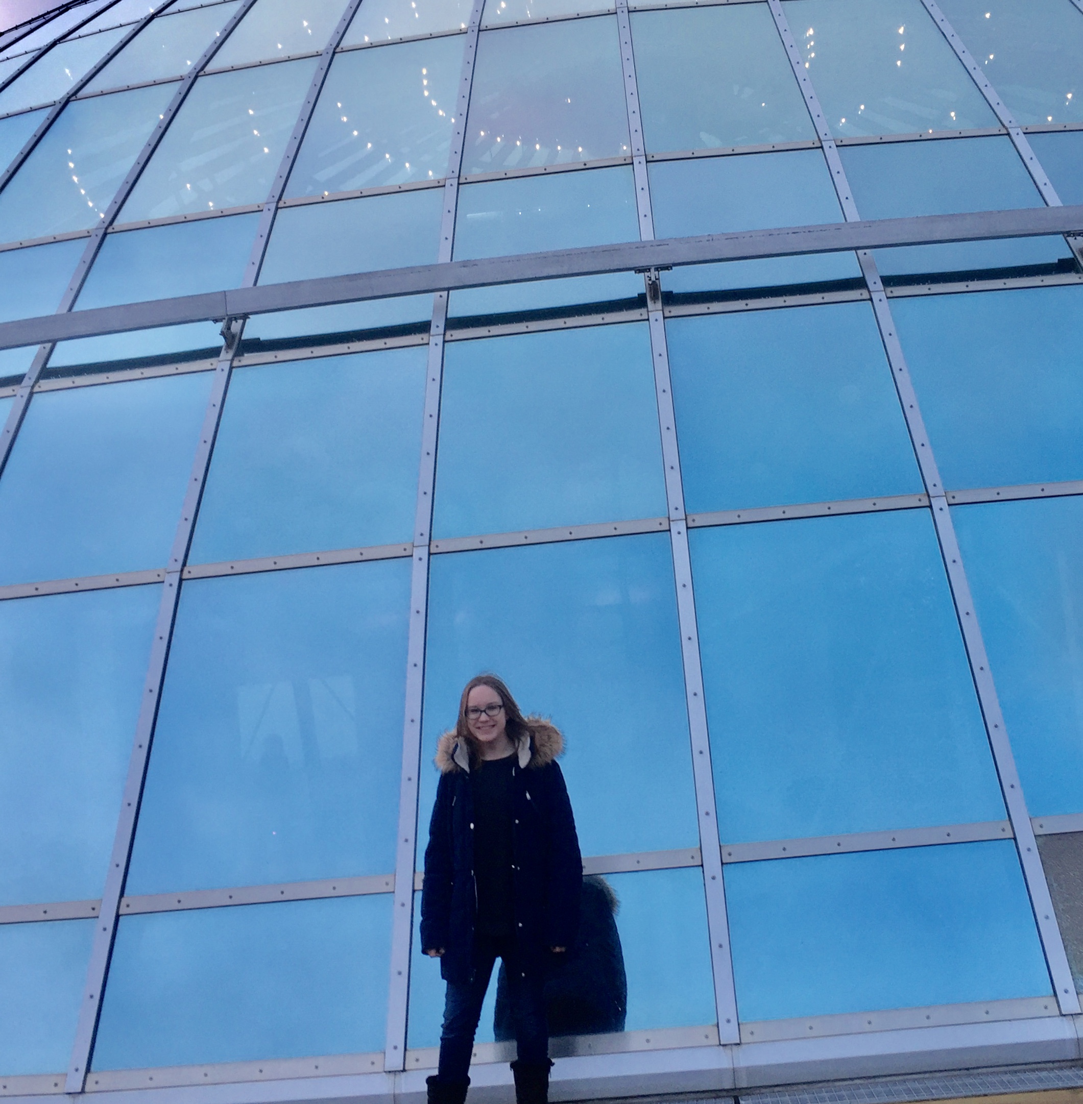 Scultpures outside of Perlan. The dome sits on top of massive, repurposed water tanks. You can see them in the background.