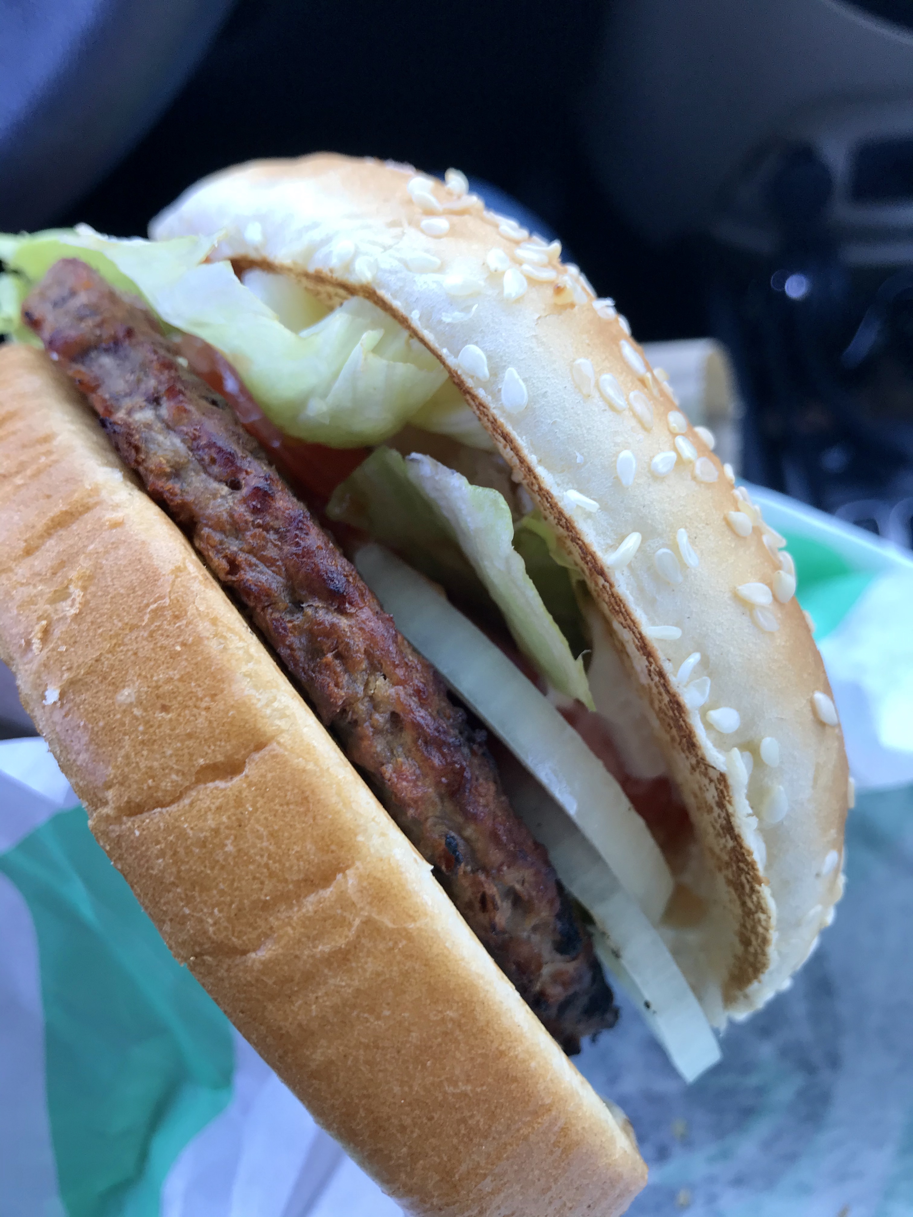 After tasting all these burgers, my choice is to go back to a humanely-raised grass-fed burger, but for that, I have to go to my own kitchen. I can’t get it through the window of my car.