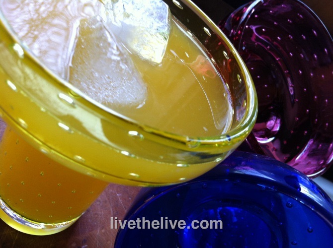 My personal recipe uses no sour mix…just 4 basic ingredients. I still have a small stash of the HoneyBells mentioned here, but the original recipe, below, uses pineapple juice, orange juice, or a combination of the two. Cheers!