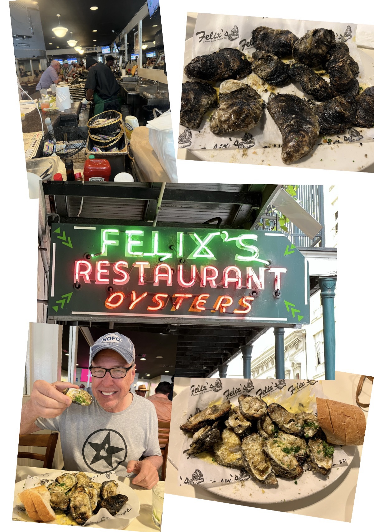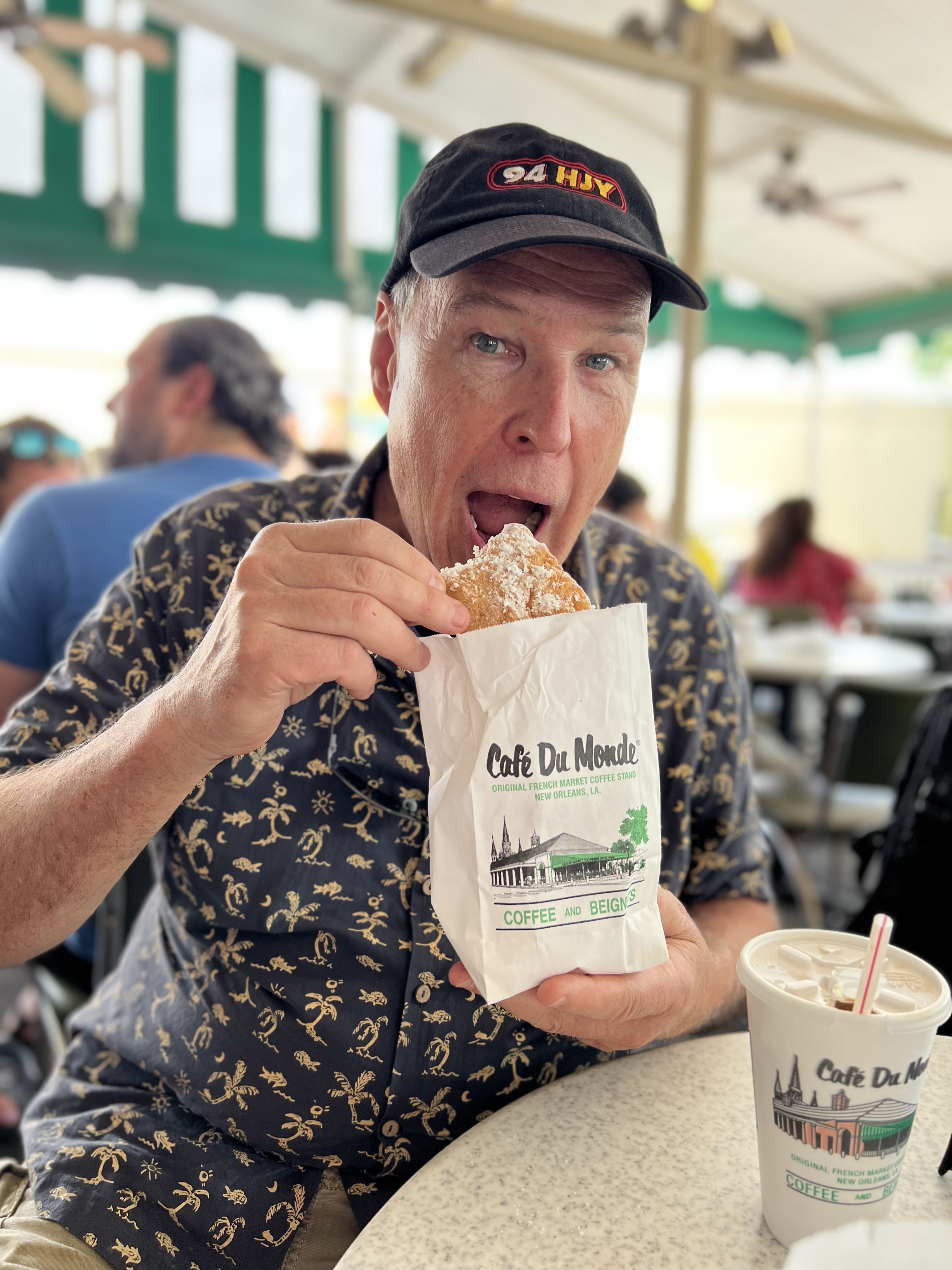 We always visit the Hard Rock Cafe in every town we go to, and NOLA was no exception. It was my daughter‘s 10th Hard Rock. An espresso martini in the afternoon was perfect.Pascal’s Manale is famous for inventing Louisiana BBQ shrimp. It was messy, and absolutely delicious! I must’ve eaten two loaves of bread, just dipping it in the sauce.Sometimes you need a break from all the Cajun food. Sushi at Tsunami fit the bill!Lunch at Luke, a John Besh restaurant, was delicious and cheesy. But their baked oysters had nothing on the char grilled oysters at Felix‘s. Those were the best I’ve ever had! What would a visit to New Orleans be without the classic cocktail called the Sazerac? And the only place to get it is at the Sazerac Bar at the Roosevelt Hotel! If you haven’t been to Café Dumonde, you haven’t been to New Orleans!