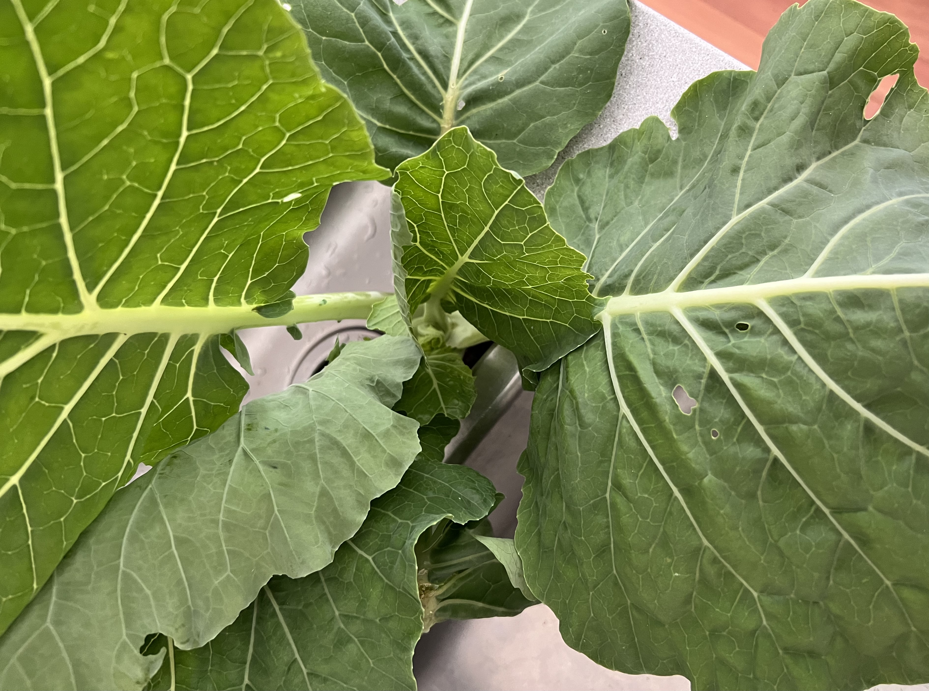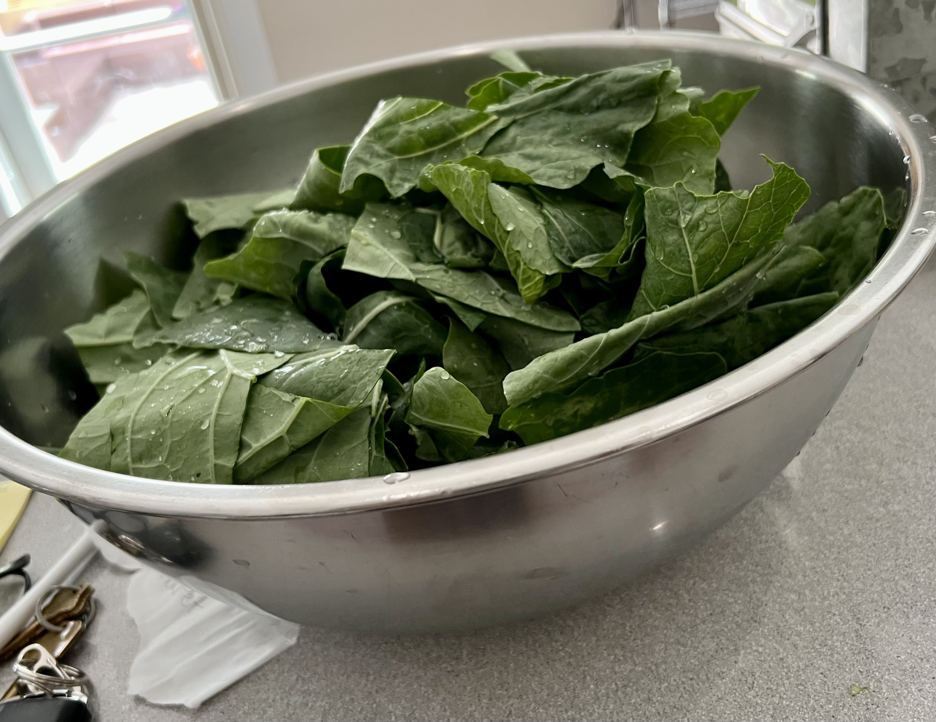 But these plants were mature, with very large, happy leaves. So the answer was to cook them. I decided to treat them as if they were collard greens.