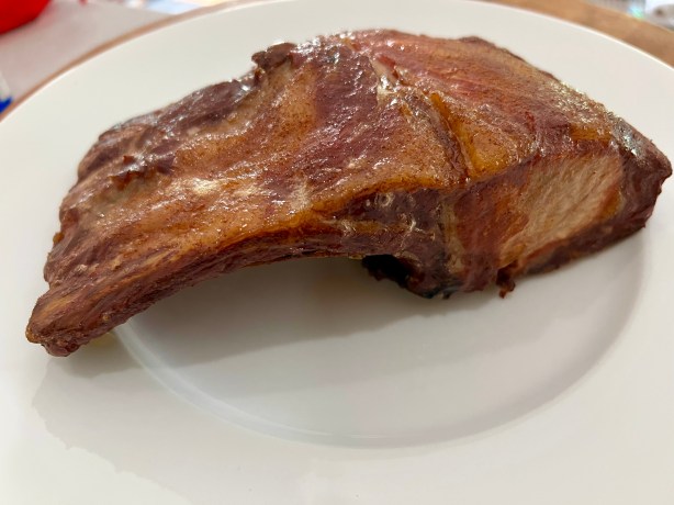Using the chips, I smoked the ribs for about two hours. The end result gave the pork a beautiful caramel hue.