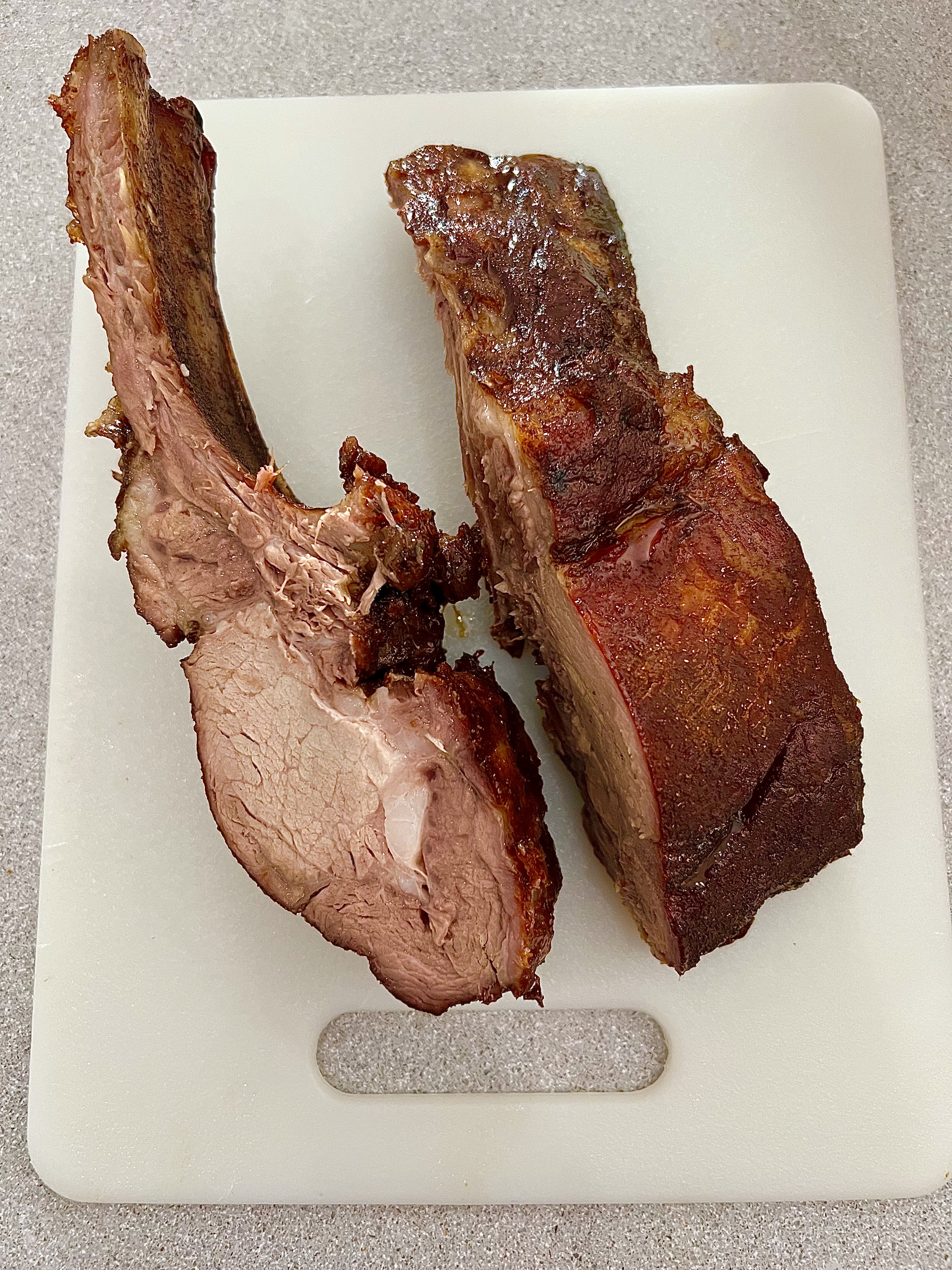 I recently purchased several different cuts of the famous Spanish Iberico pork from Campo Grande. One of the cuts was a four-rib slab. I chose to give it some smoke and a slathering of sauce.