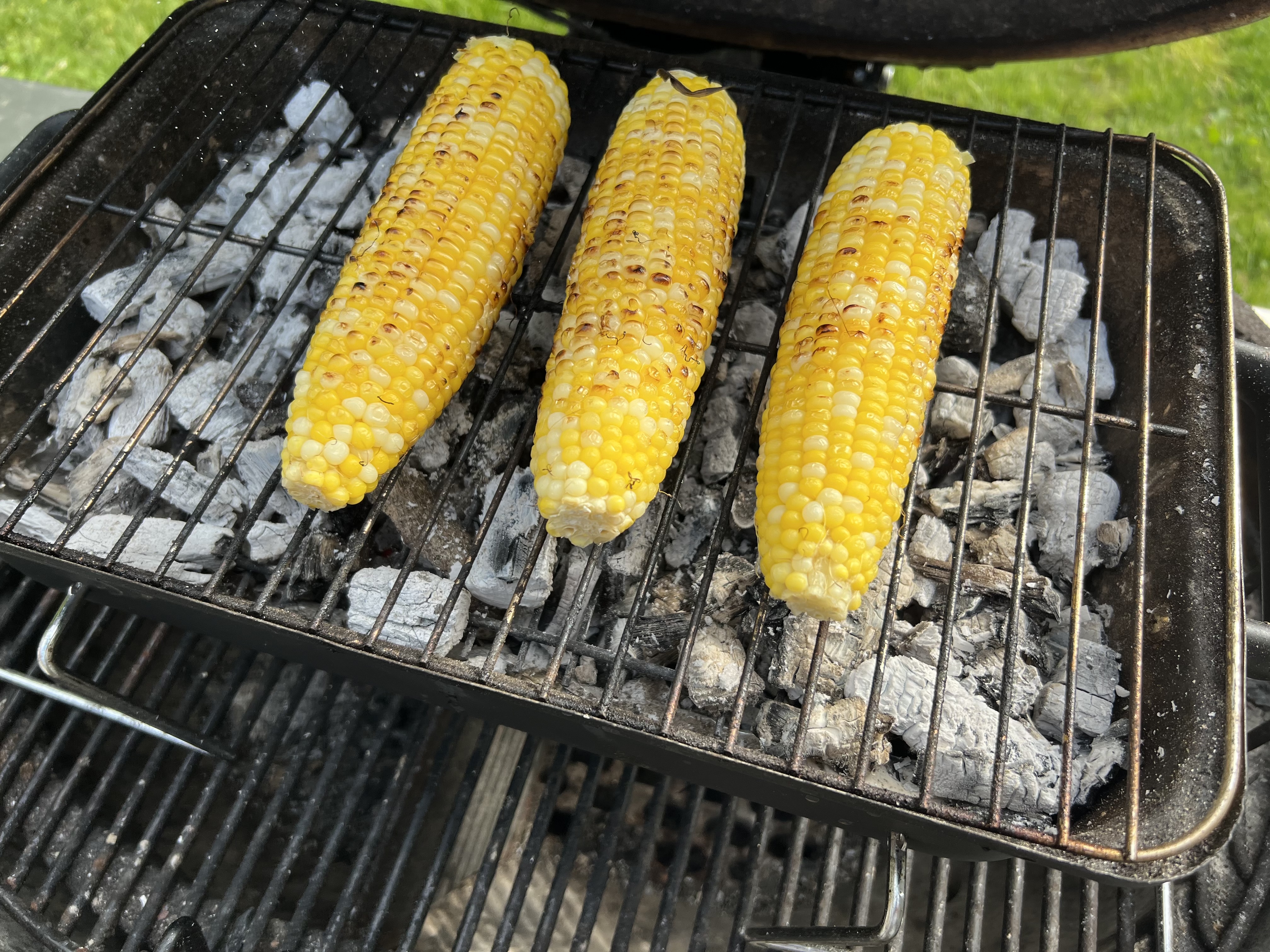 I didn’t mean to cheat…honest. But I wasn’t thinking when I bought my corn in the supermarket, and I bought ears that were already shucked. Classically, Mexican street corn is made by throwing unshucked ears of corn on the grill to cook them. So I improvised.
