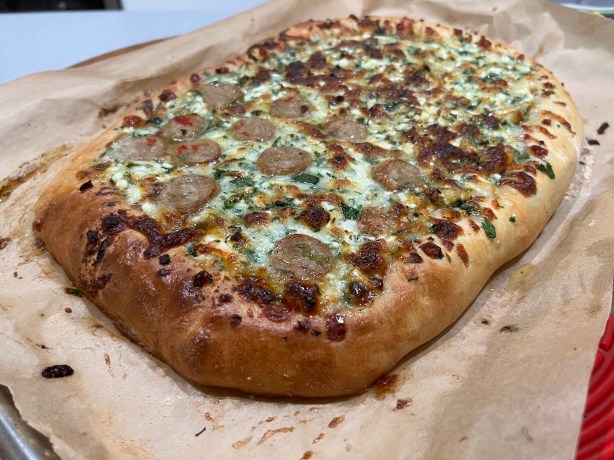 Place the sheet pan in the center of the oven and bake for 20 — 30 minutes, until the cheese is bubbly and the crust is golden brown.