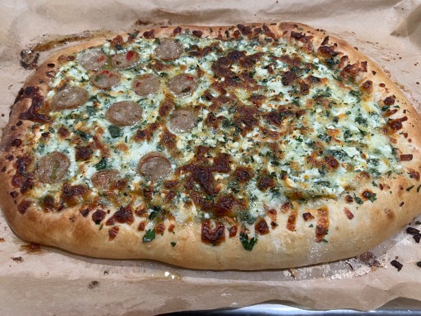 Our large fatayer, though not traditional, was still absolutely delicious, and the use of olive oil in the dough (a lot of it) and an egg wash on the crust gave a softeners and chewiness not unlike the best pretzel you’ve ever had! Really delicious!