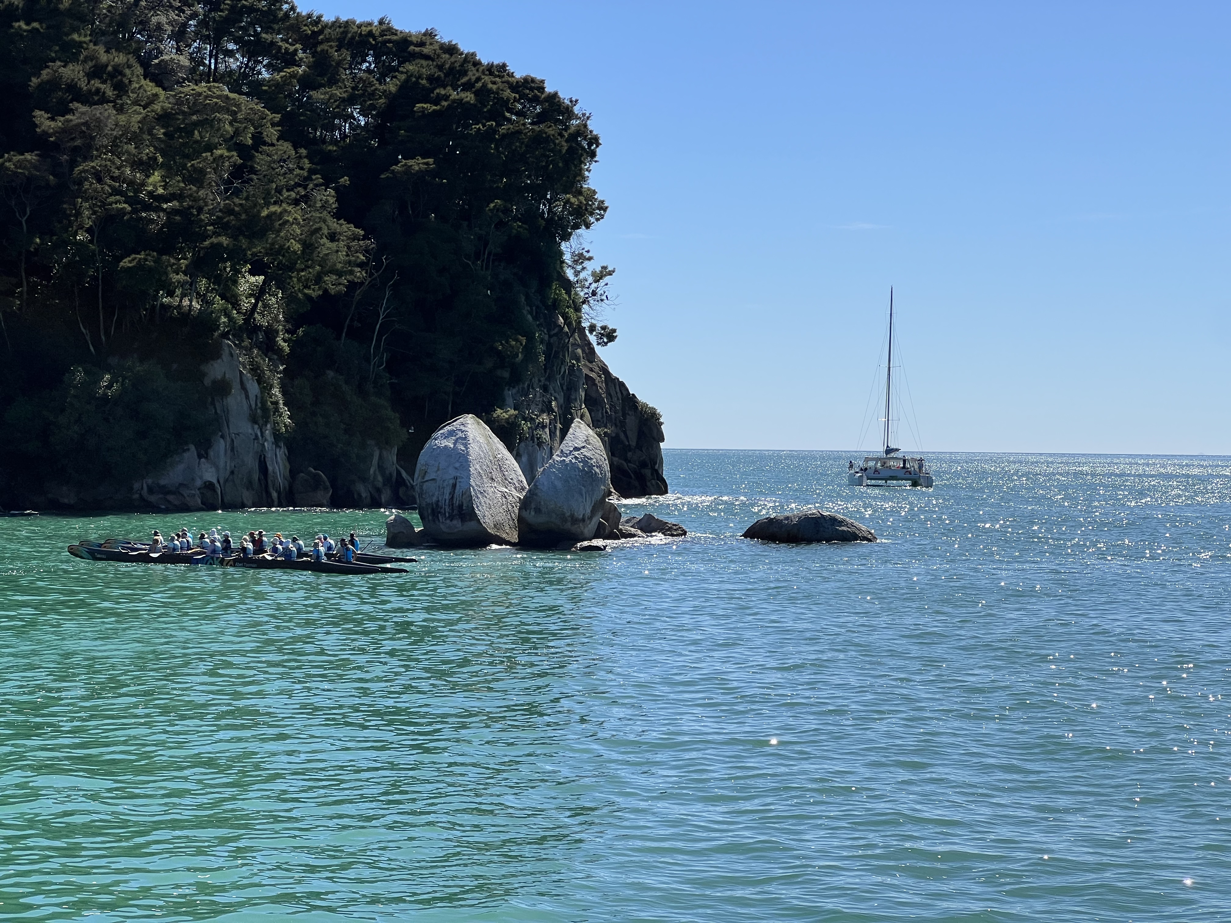 An absolutely stunning day on the water today! A little swimming, sunning, hiking in Abel Tasman Park. Saw Split Apple Rock, a famous landmark. Awesome day! Mac and Emma from @abeltasmancharters were the best!