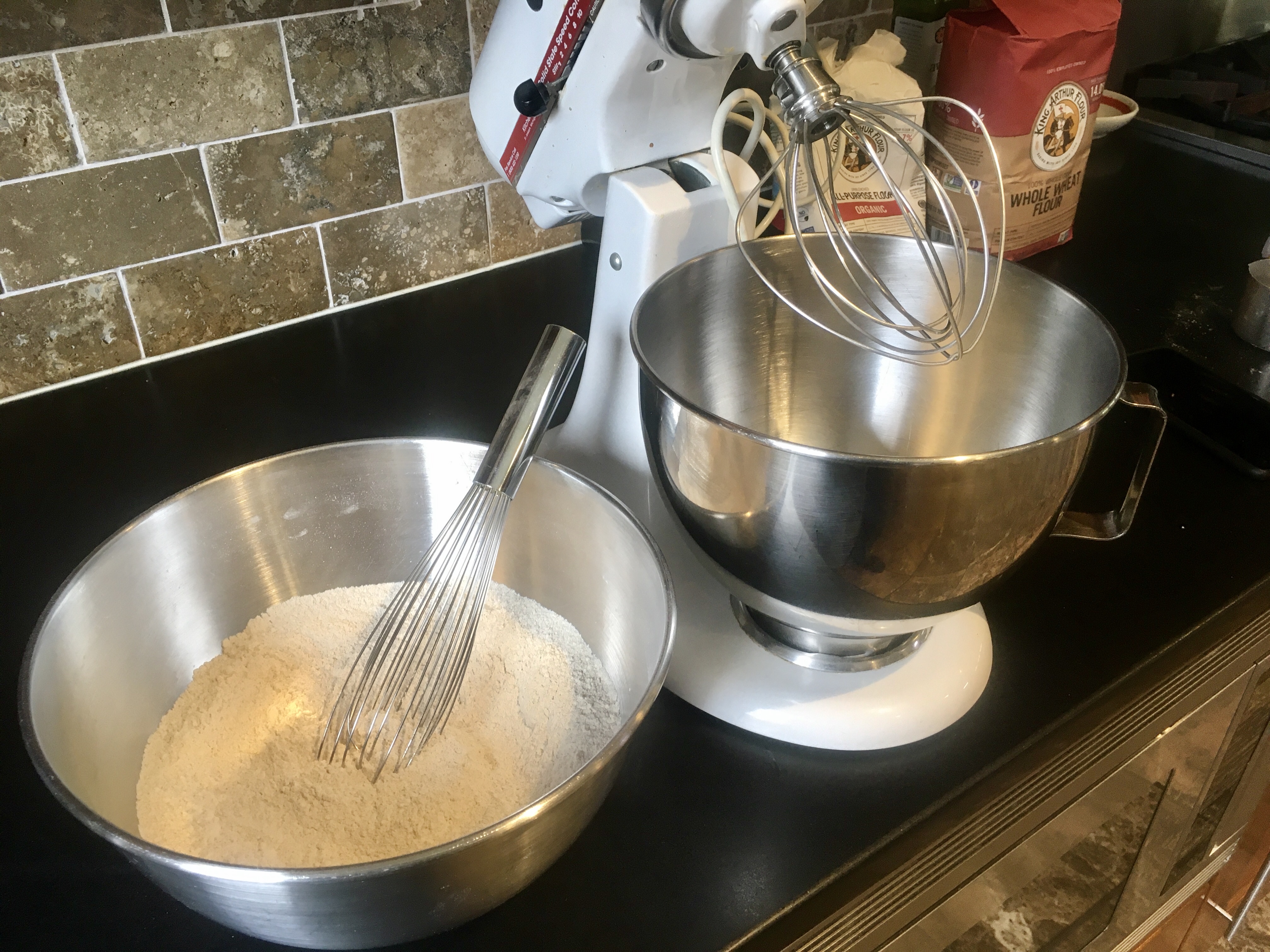 I finally found one that used regular milk instead of buttermilk. I combined organic all-purpose flour with organic whole wheat flour; I like the richness in flavor whole wheat flour brings.