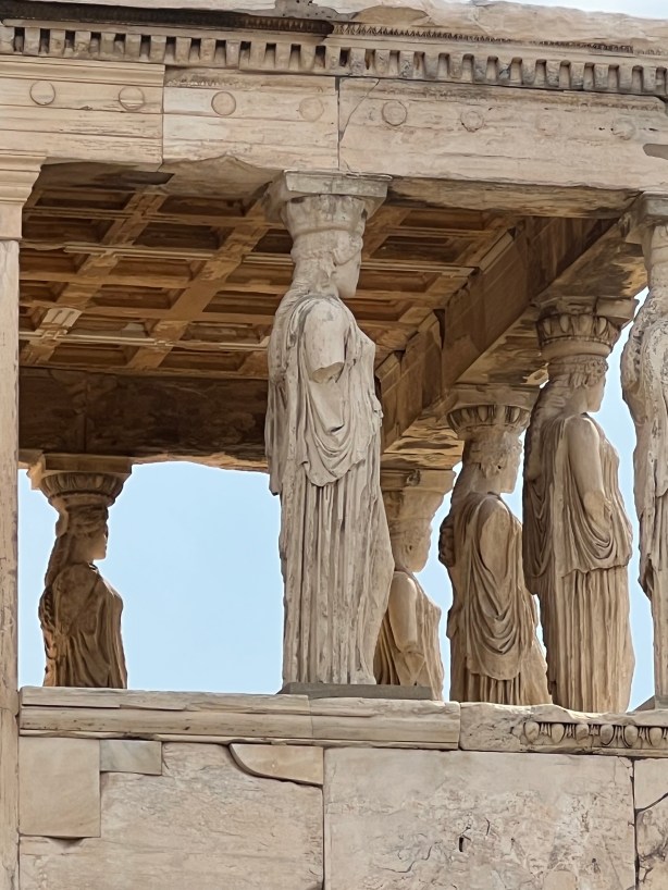 The Daughters of Athens were removed from the original location and replaced with copies. The originals are on display at the Museum of the Acropolis. One daughter is missing, because she is still in England, and the Greeks are fighting to get her back.