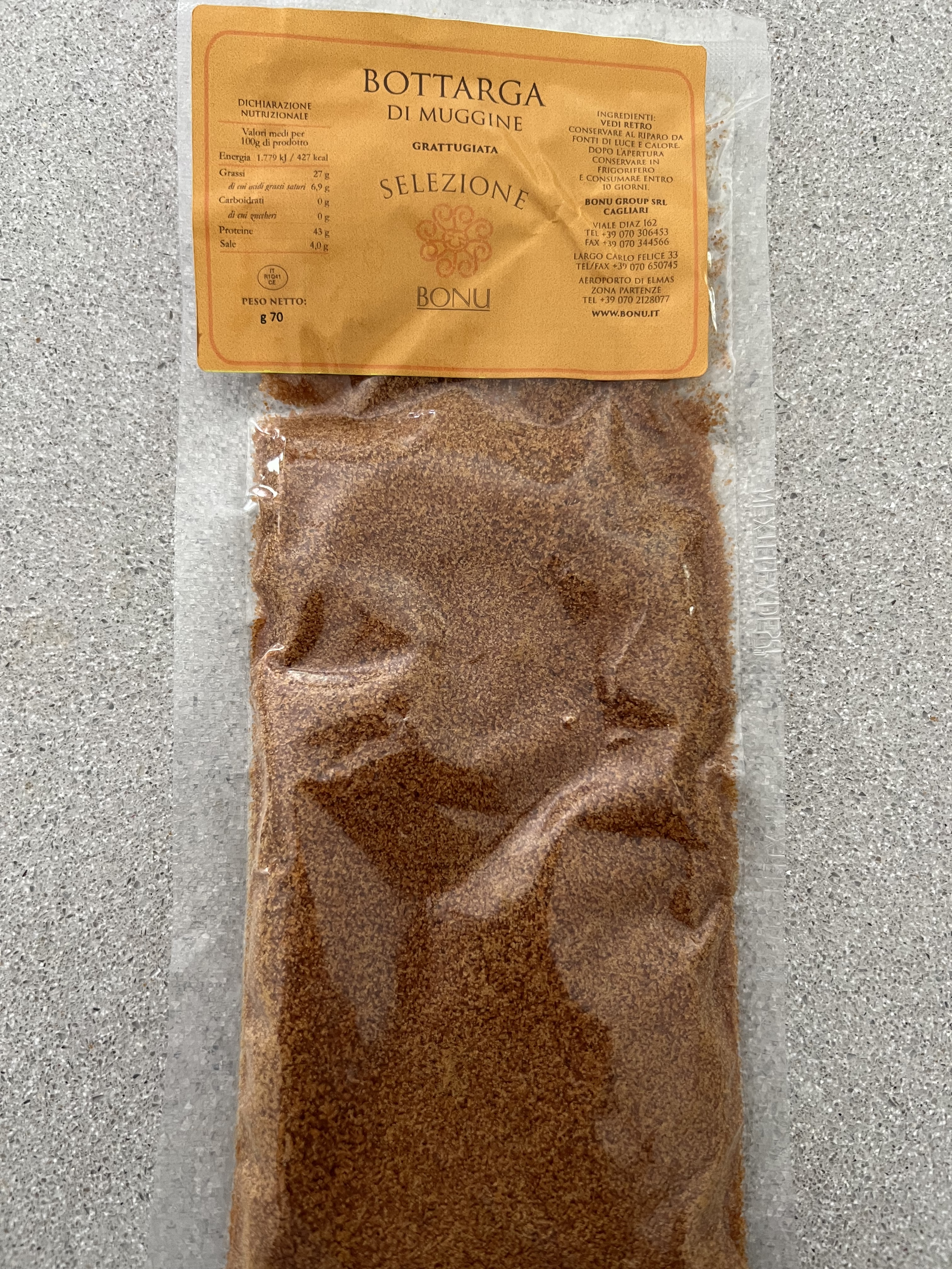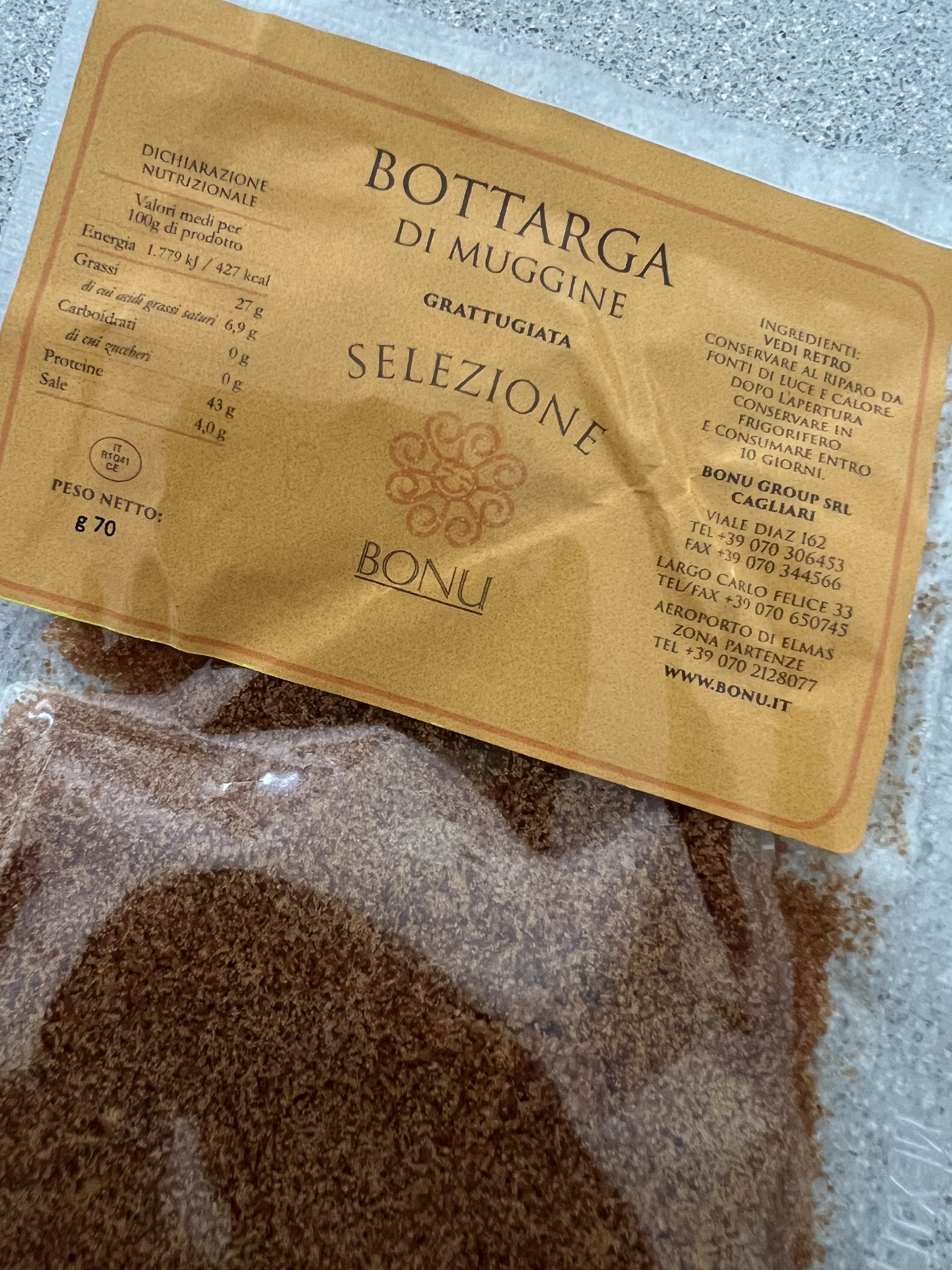 Very often, bottarga comes in a chunk, and you have to grate it yourself. But I received a packet of already grated bottarga as a gift, and I went online to find the most simple preparation I could find to highlight the flavors, not hide them.