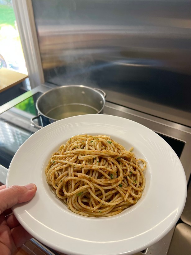 The ingredients sounded perfect, and it didn’t hurt that I had them all at home: pasta, olive oil, garlic, lemon, parsley, red pepper flakes, and of course, the bottarga.