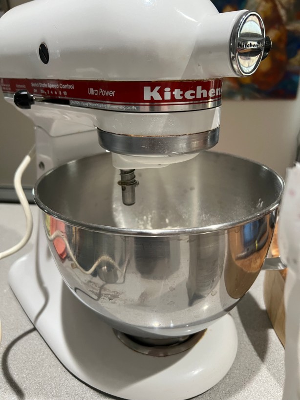 Once the dough ball pulled from the sides of the mixing bowl, I took it out and continued to knead it by hand until the ball was smooth.