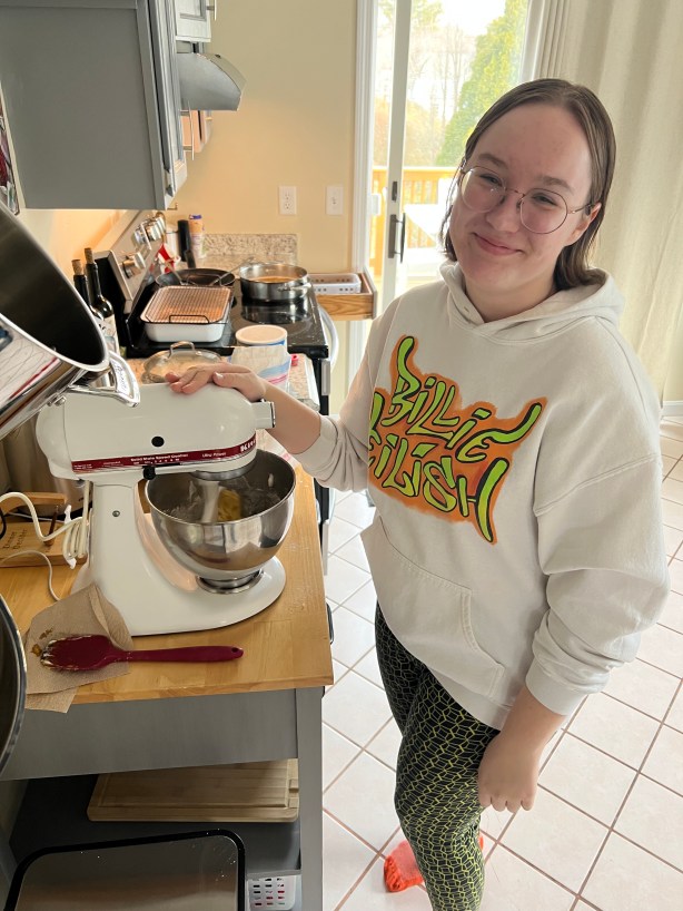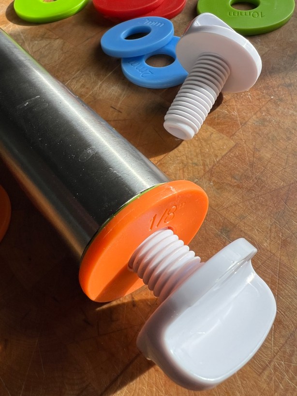 The original recipe said to roll the dough out to about 1/8″ thick, and I have a rolling pin that can be set in increments. I found that 1/8″ of an inch, although absolutely delicious, was thicker than my mom’s recipe. So it’s up to you if you want to go thinner with the dough.