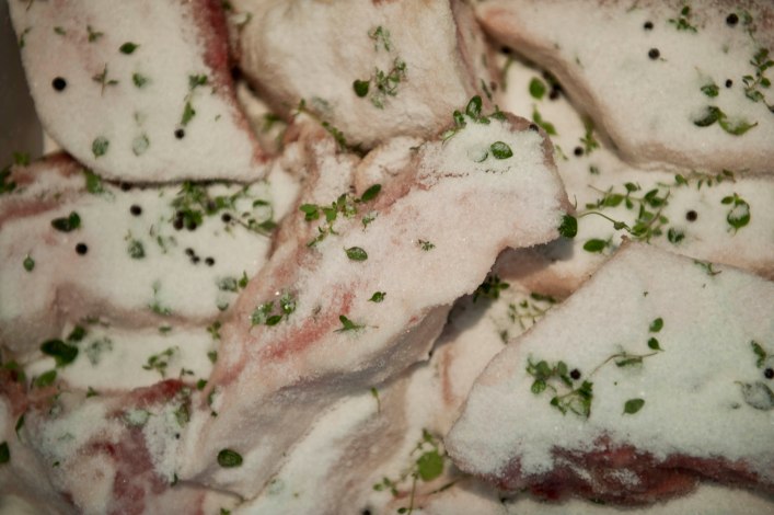 The reason I mention that I use Diamond Crystal Kosher salt is because all Kosher salt does not weigh the same. Morton Kosher salt, for example, is much heavier by volume, so it weighs more even though you’re using the same cup measurement. In the case of Diamond Crystal, 1/3 cup weighs 50g. Same rules apply to the sugar. Go by the weight, not the cup measurement. This is really important point to keep in mind when you’re curing anything, fish or meat.