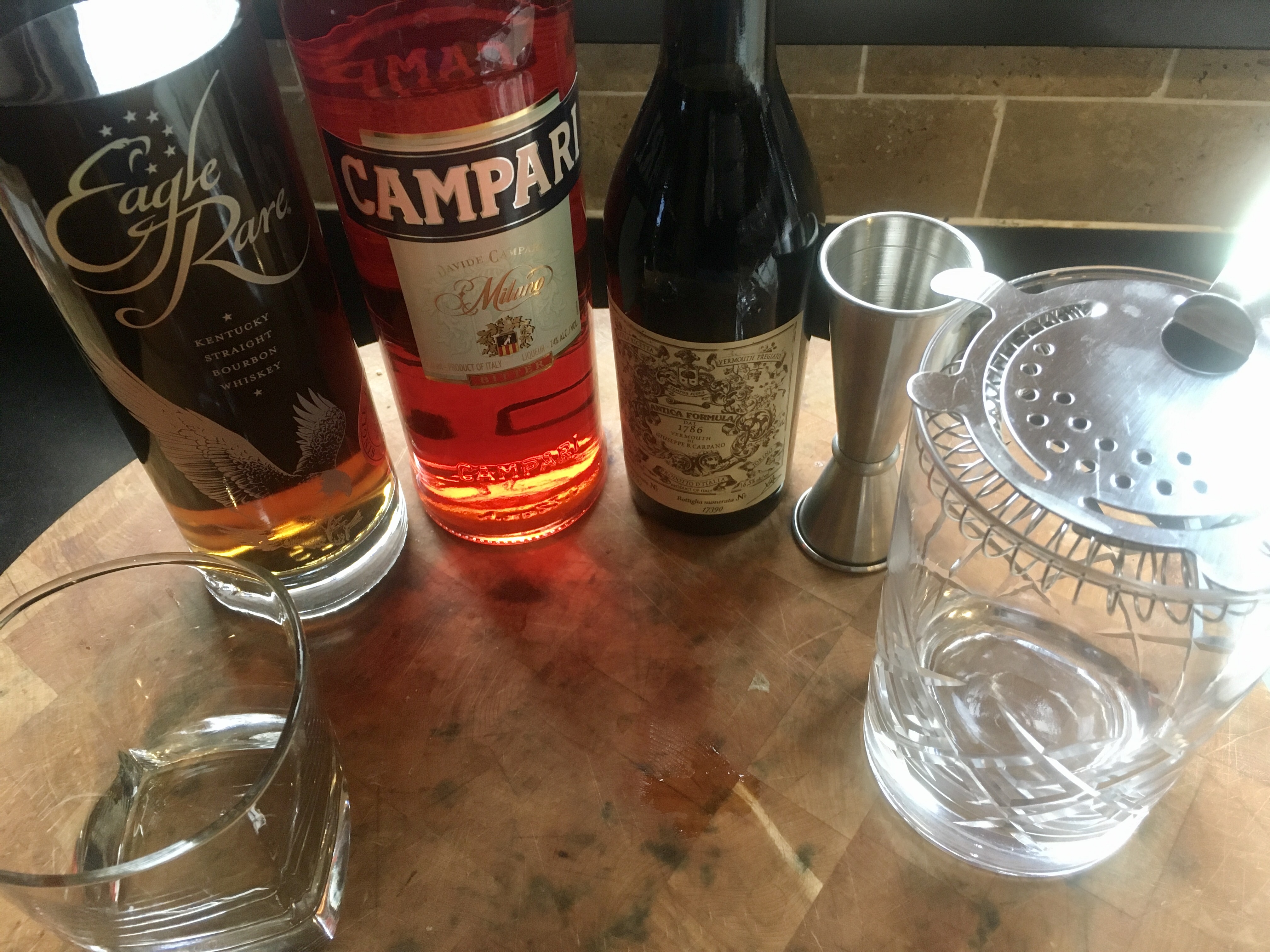 My personal preference for whiskey is bourbon, and one of my favorite bourbons to mix with is the very affordable 1792 Small Batch, though Buffalo Trace is another great choice. And for sweet vermouth, nothing beats the grandaddy of them all: Carpano’s Antica Formula.