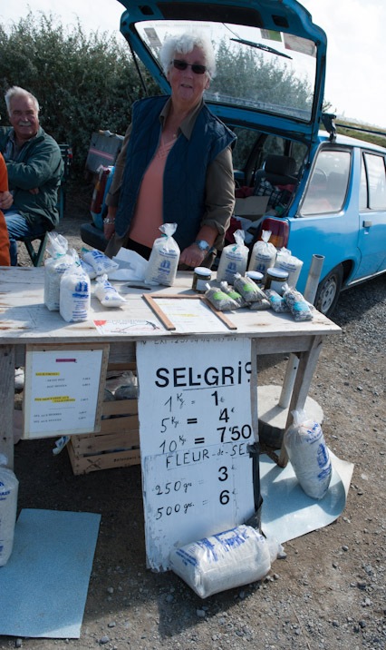 The salt marshes outside the city walls have been around a long time…the last of them built around 1800. Salt production here declined soon after, because salt was available more cheaply from salt mines. But you gotta love foodies…the influence of chefs and food lovers around the world have brought back the demand for this very special product. Salt workers now harvest about 15,000 tons of cooking salt a year, and about 300 tons of the very precious Fleur de Sel.