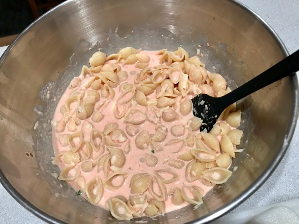 Other than that, we stayed true to the recipe, using shell pasta because that’s what we always got at the restaurant.