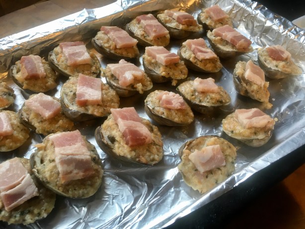 Steamed New Zealand green-lipped mussels. Available frozen in many stores. Get the plain ones, not the ones that already come with sauce.