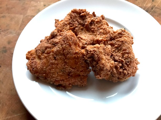 Carefully place the chicken in the pan. Don’t overcrowd the pan. Work in batches. Fry the chicken until it’s cooked all the way through and golden brown. Drain on a wire rack or paper towels.