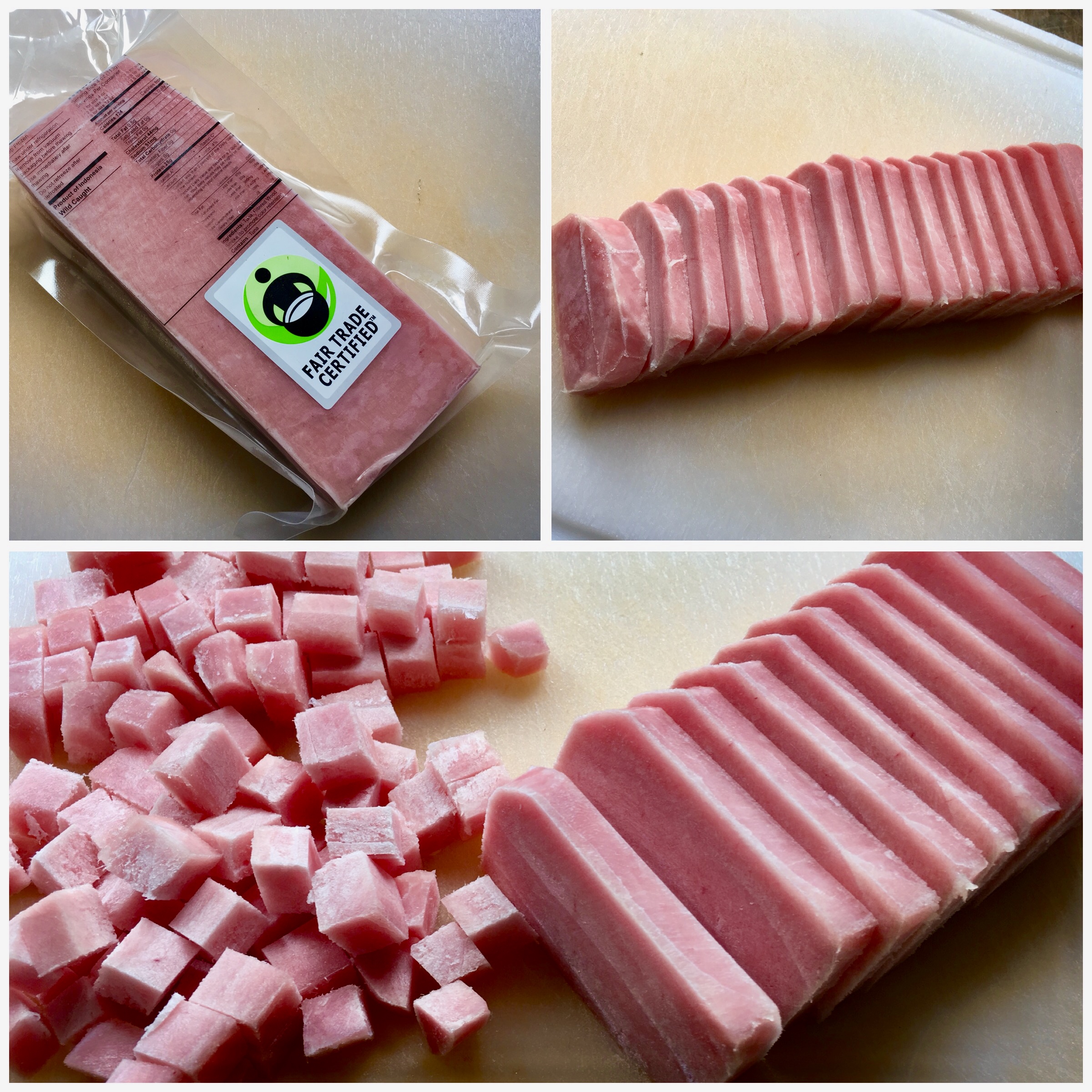 I always try to buy responsibly sourced, fair trade seafood, like this beautiful ahi tuna.