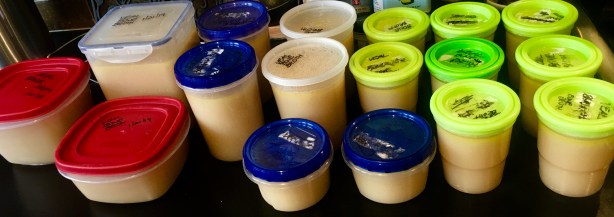 Once I dug the roots out and washed them clean, they needed to be peeled down to their white center. Then they were ready to be grated. I used the same system my grandfather did, many years ago: a simple hand grater for the job. If you thought you cry when you slice onions, you ain’t seen nuthin’ until you’ve grated horseradish! But it’s worth the effort.