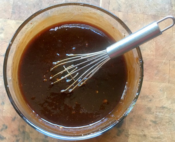 I was looking back at a previous blog I had written about Korean barbecue, and I was really craving a lot of the flavors in my recipe…but I was comfy here at home on a bad weather day, and I wasn’t about to go out to the store to buy the one key ingredient I didn’t have: a spicy sauce called Gochujang. So, I looked in my fridge for a reasonable substitute, and there, on the shelf, was a brand new bottle of Chinese chili garlic sauce. It was exactly what I needed.