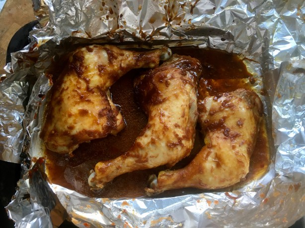 Looks good, but it’s not cooked yet! Once it’s basted, fold the foil over the top of the chicken to make a packet.