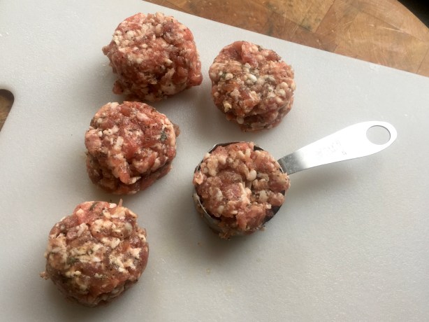 A 1/4 cup measure makes it easy to make equally-sized sausage patties.