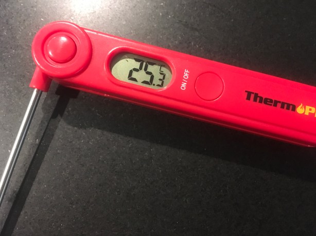 Make sure the turkey doesn’t float up by placing a plate on top. Put the turkey container in the fridge (or a cold garage or basement) for 4 to 6 hours, flipping the turkey over in the container halfway through.