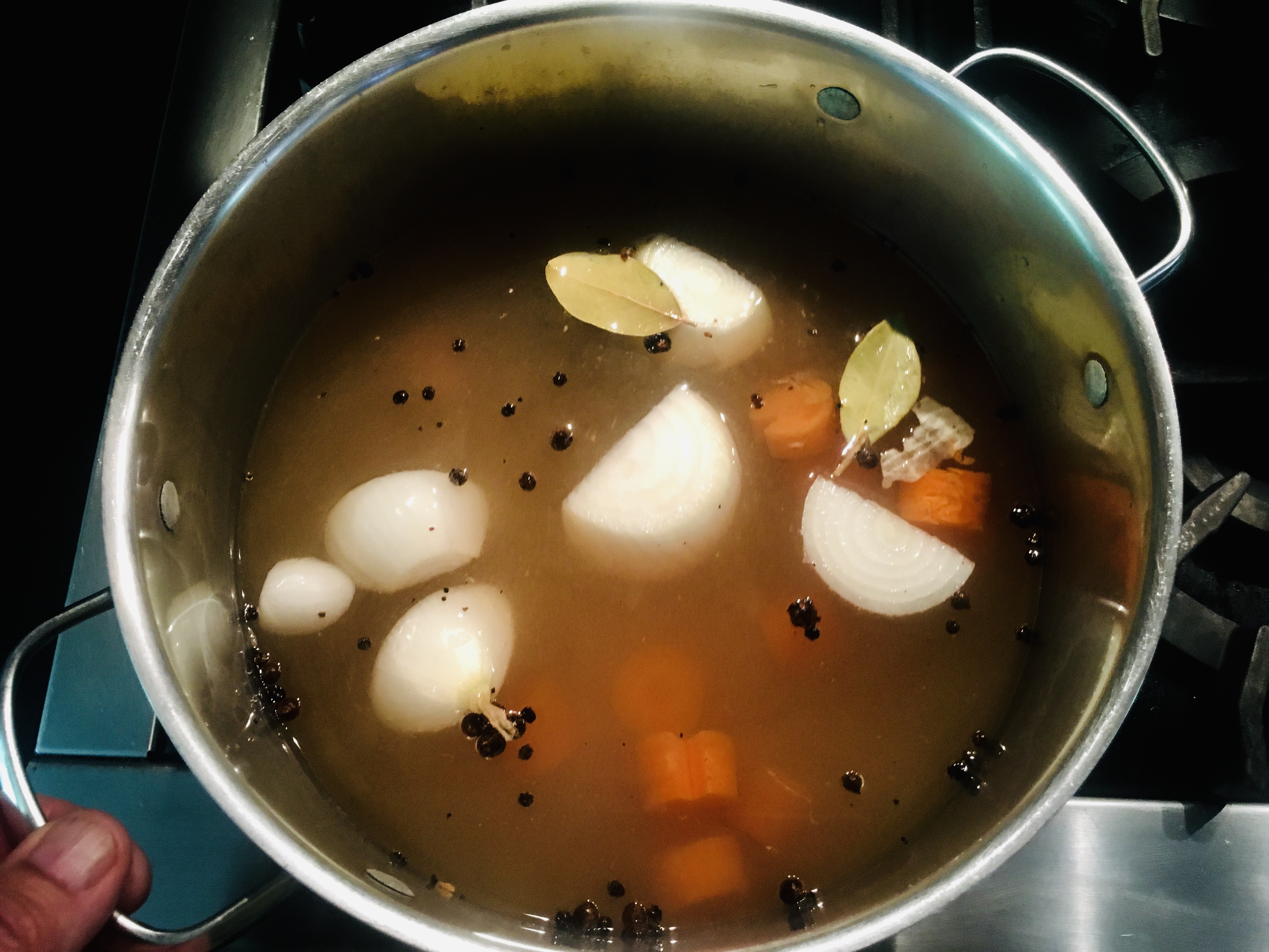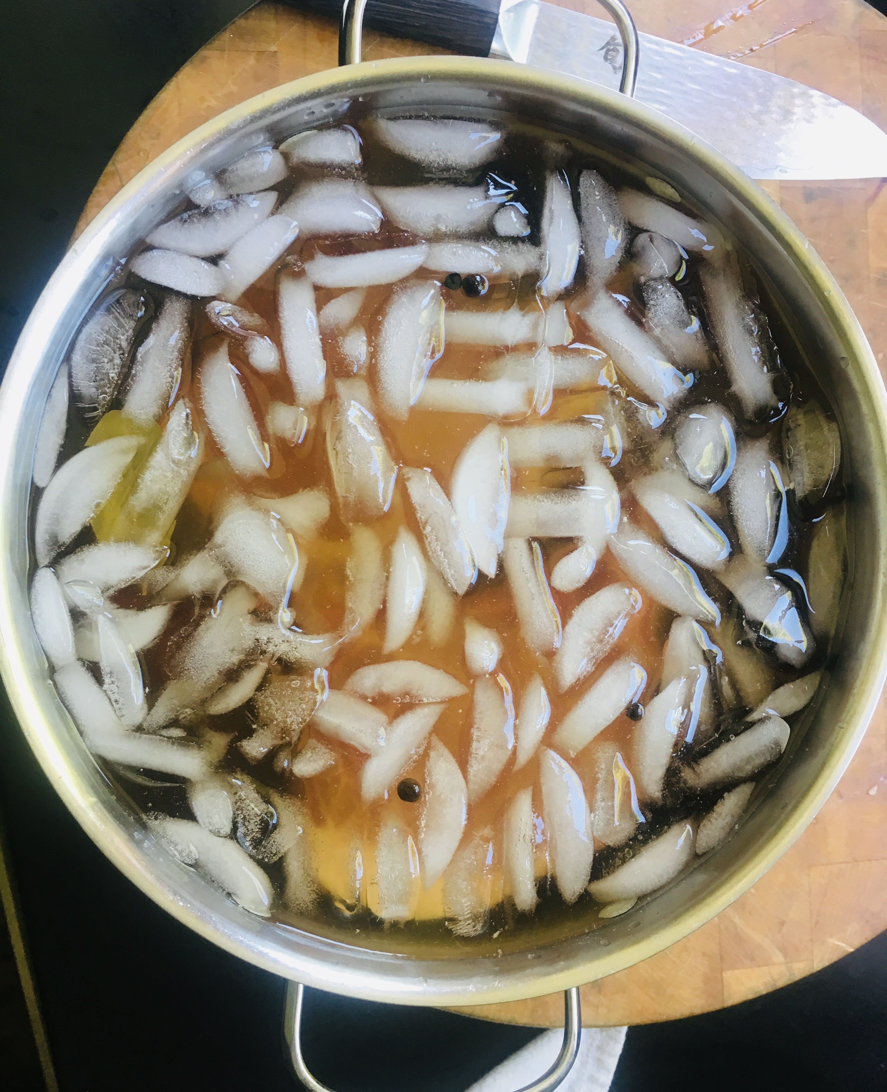 Let the pot come to a boil for a few minutes. Remove it from the heat and let the brine cool down to room temperature.