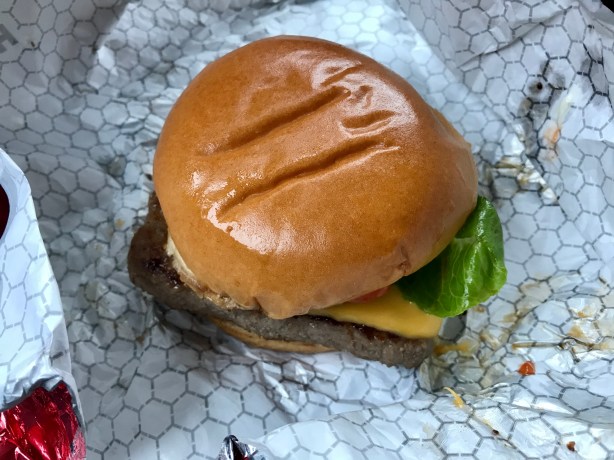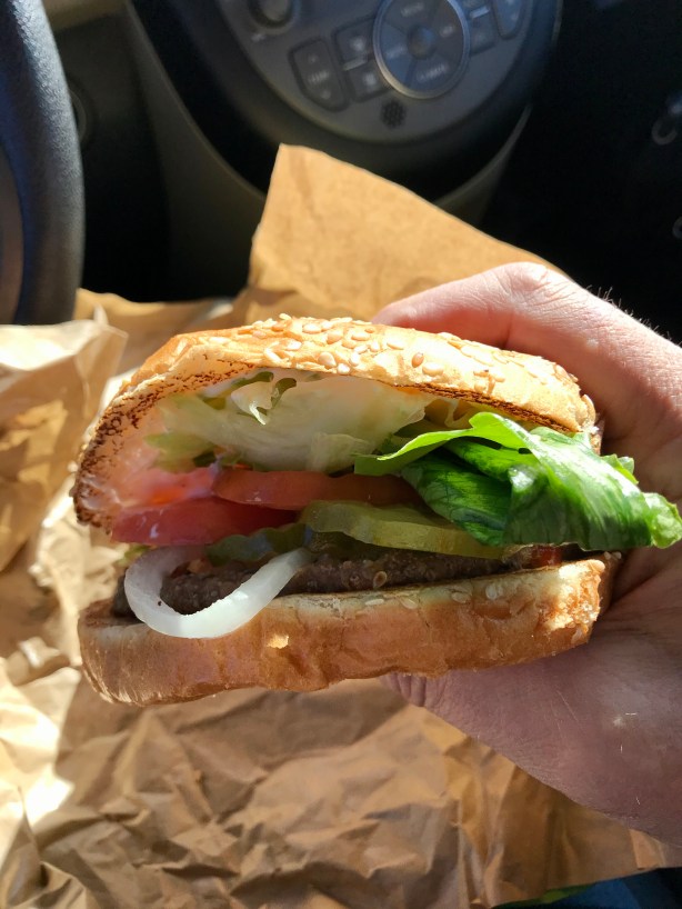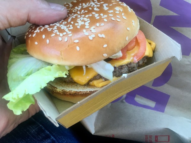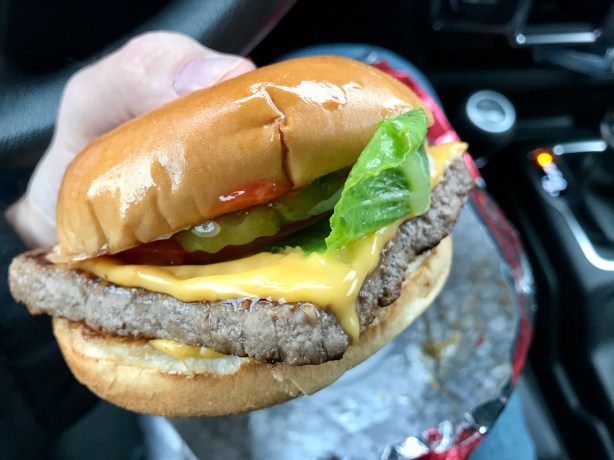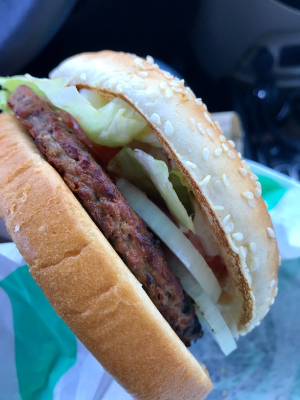 After tasting all these burgers, my choice is to go back to a humanely-raised grass-fed burger, but for that, I have to go to my own kitchen. I can’t get it through the window of my car.
