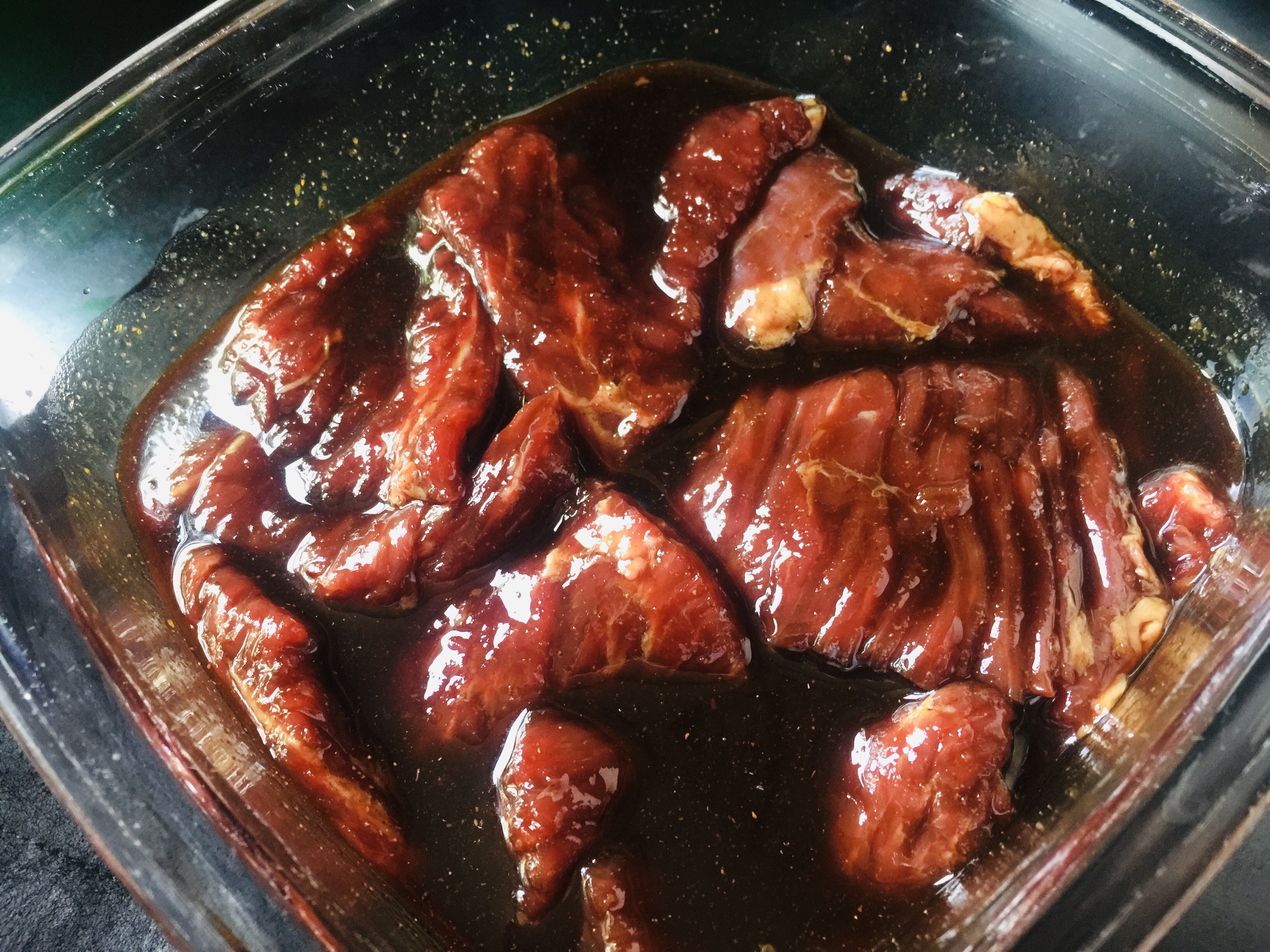 I was looking back at a previous blog I had written about Korean barbecue, and I was really craving a lot of the flavors in my recipe…but quarantined here at home, I wasn’t about to go out to the store to buy the one key ingredient I didn’t have: a spicy sauce called Gochujang. So, I looked in my fridge for a reasonable substitute, and there, on the shelf, was a brand new bottle of Chinese chili garlic sauce. It was exactly what I needed.