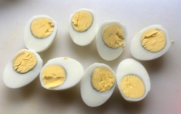 Here’s another tip: the easiest peeling eggs are older eggs! No…that doesn’t mean you let your eggs sit out on the front porch for a week. What that means is: but them from your supermarket rather than the farm stand down the road. Super-fresh eggs still have a membrane attached to the shell that makes them difficult to peel. The membrane detaches in slightly older eggs, making them easier to peel.