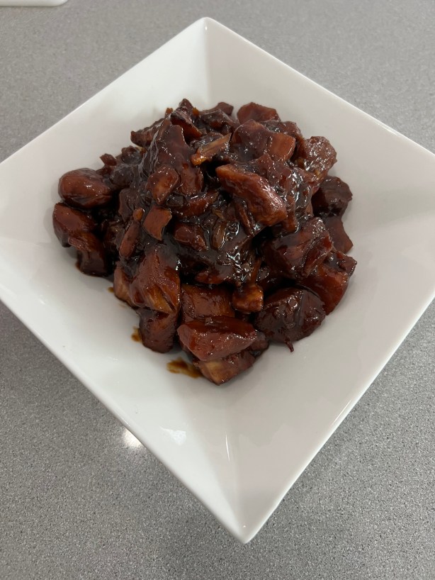 These delicious “chunx” of pork are full of fantastic Asian flavors and go great with broccoli and rice…or just by themselves. Plus, I used inexpensive boneless pork sparerib meat, which saves a few bucks.