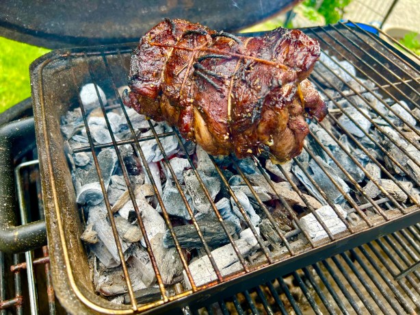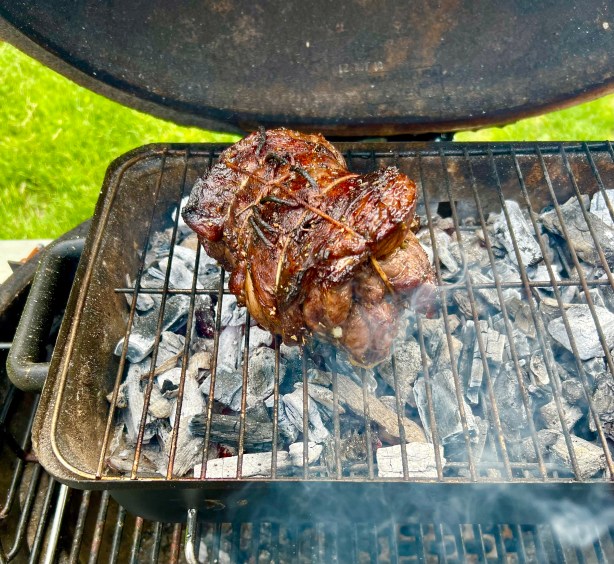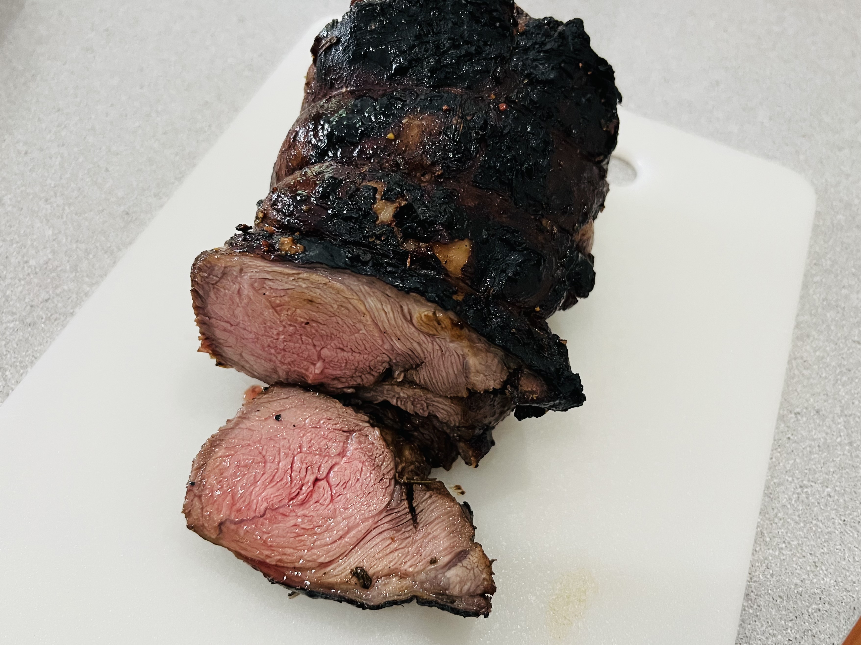 I finished the lamb on my outdoor grill over hardwood charcoal to get a little smokiness and char.