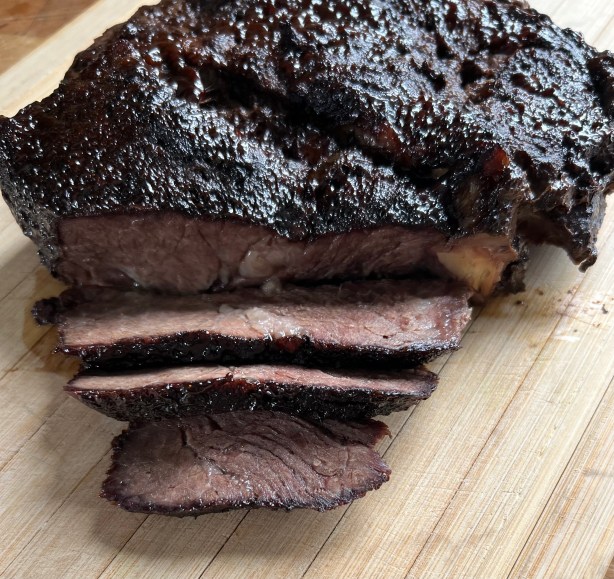 The rib meat is fatty, however, and often has some gristle. So I trim as much of that away as I can to keep the tasty bites tender.