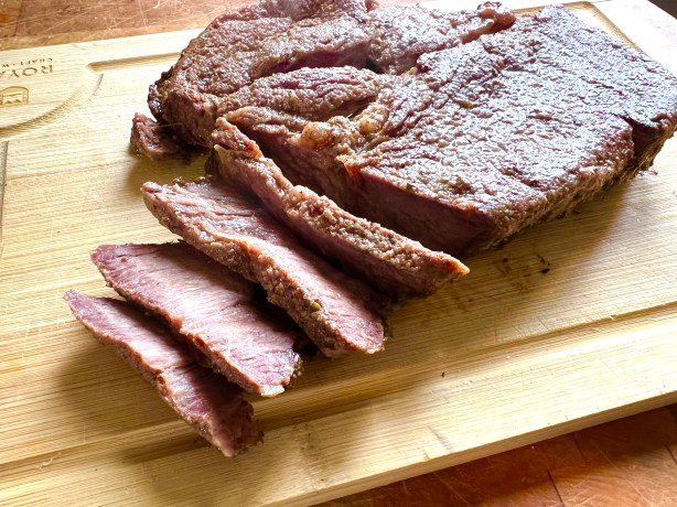 Let it rest for 15 minutes. Slice the chuck roast on the diagonal for maximum tenderness.