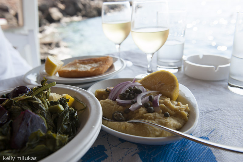 On our last trip to Santorini, our most memorable fava dishes were a simple and rustic, with onion, capers, olive oil and a side of lemon. One of our favorite restaurants, Dimitris in Amoudi, serves it this way.