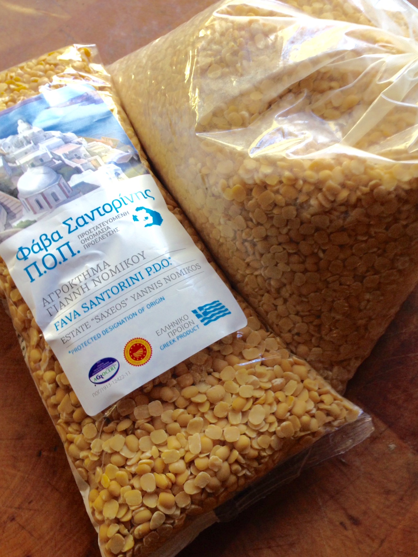 Perhaps the most unlikely food item we bring home from Santorini is what they call “fava,” but it’s not the bean we usually associate with that name. Originally, broad beans were used in this dish, but quickly it changed to a type of yellow shelled lentil that is much smaller and flavorful than its American counterpart. The lentil is smaller and the art of turning this simple gem into a sublime porridge is worth learning.