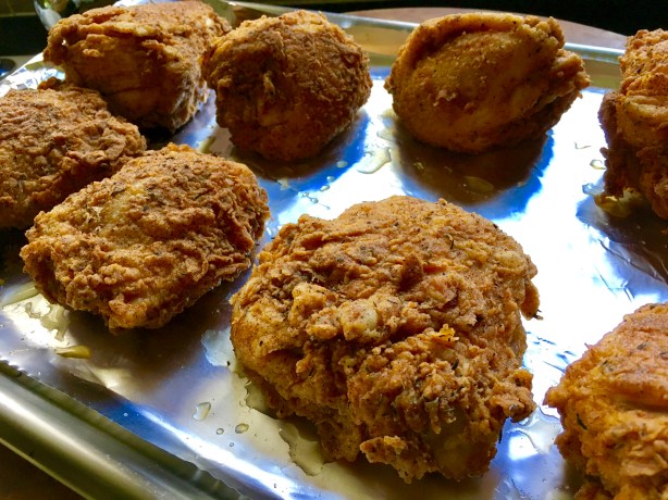 Making the KFC chicken recipe at home means I do have some control over product quality. I use pastured or organic chicken. I use clean oil. And I oven-fry my chicken, meaning I fry it in oil until golden brown, then finish the cooking process in the oven.