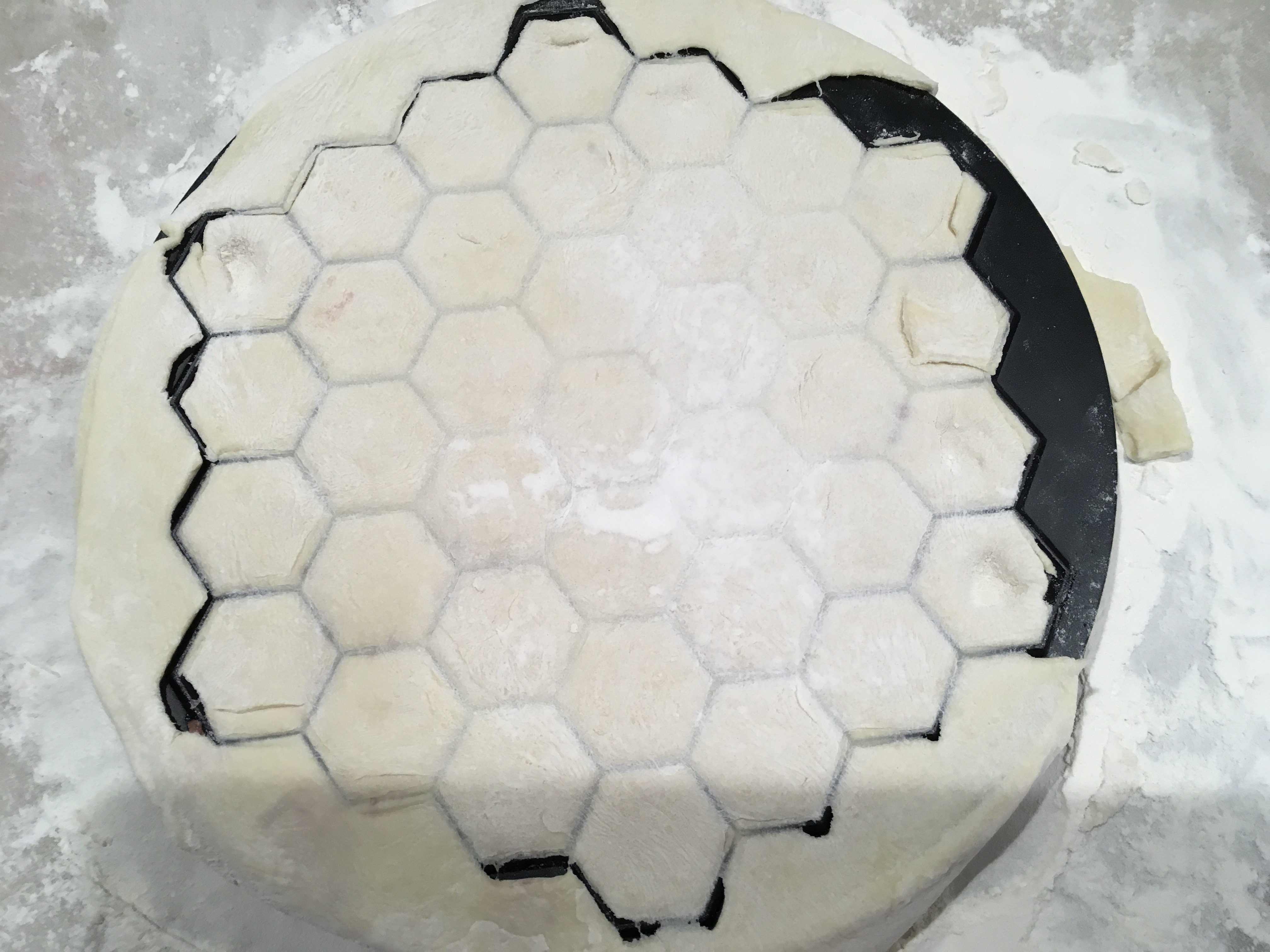 I recently discovered these “pierogi makers.” You lay the dough in them, add your filling, and then close them. They automatically crimp the edges for you. They work pretty well…sometimes. It’s faster with the traditional method.