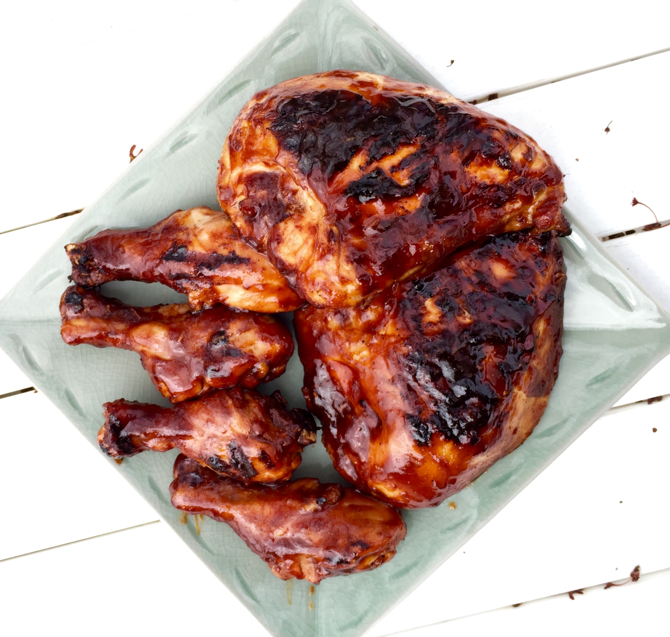 Leftovers are awesome. Simply take the chicken out of the fridge, brush with more sauce, and place it in a 300-degree oven for about 10–15 minutes. It will take on an even darker color.