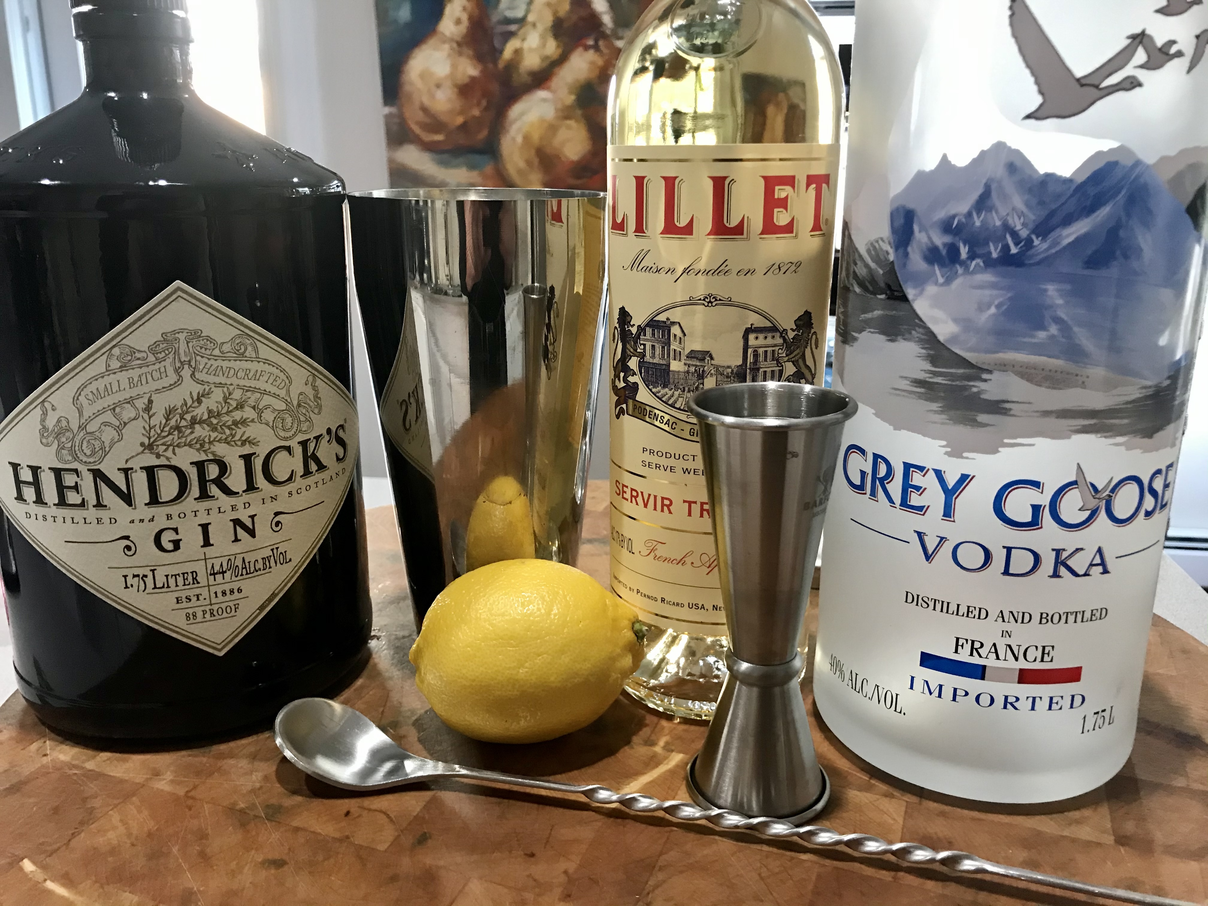 My first homemade version of this classic drink remained true to the measurements of the original, though I changed brands due to personal preference. In the novel, Bond just asks for “vodka.” (Of course, this was back in the 1950’s when we didn’t have hundreds of brands to choose from!) My choice for best-bang-for-the-buck grain vodka is Tito’s, made from corn. But an excellent choice for wheat-based vodka is Grey Goose.