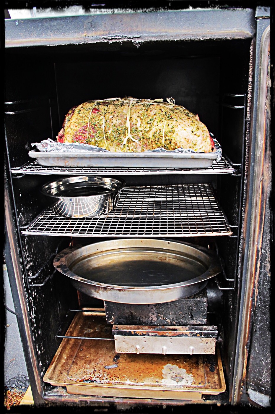 Pre-heat an oven or smoker at 250 degrees. Place the meat log directly on the grate, with a pan underneath to catch the dripping fat. Place a bowl of water in there as well, to keep the meat moist while it cooks. Cook for 5 hours, then wrap in foil and cook another 2! Let it rest an hour before slicing…if you can wait that long!