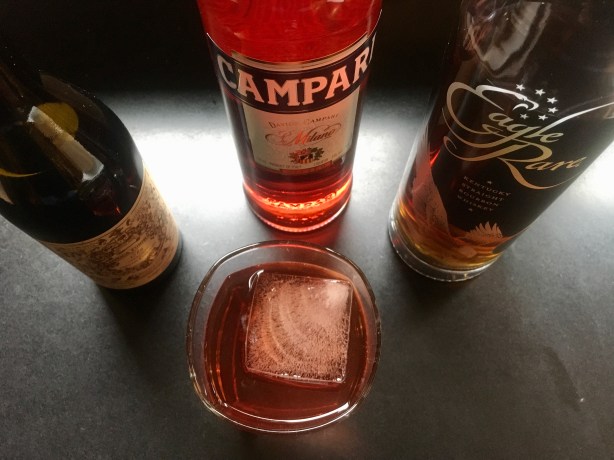 Many recipes go for the classic 1:1:1 ratio, like you’d find in a Negroni. Others boost the bourbon to 1.5 ounces. But I actually prefer a 2:1:1 ratio.